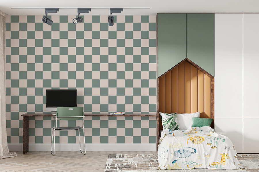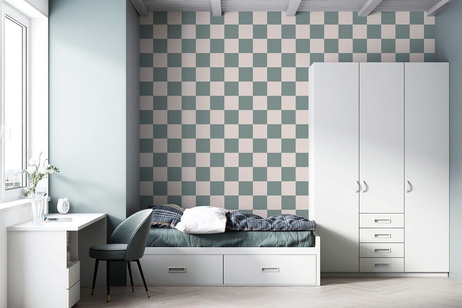 Trasformate qualsiasi parete in una delizia visiva con questo giocoso murales caratterizzato da un motivo a quadretti. È come una tovaglia retrò, invitante e accogliente. Immaginatevi di entrare in una stanza e di sentirvi immediatamente a casa, grazie a questo divertente disegno che cattura la luce nel modo giusto.