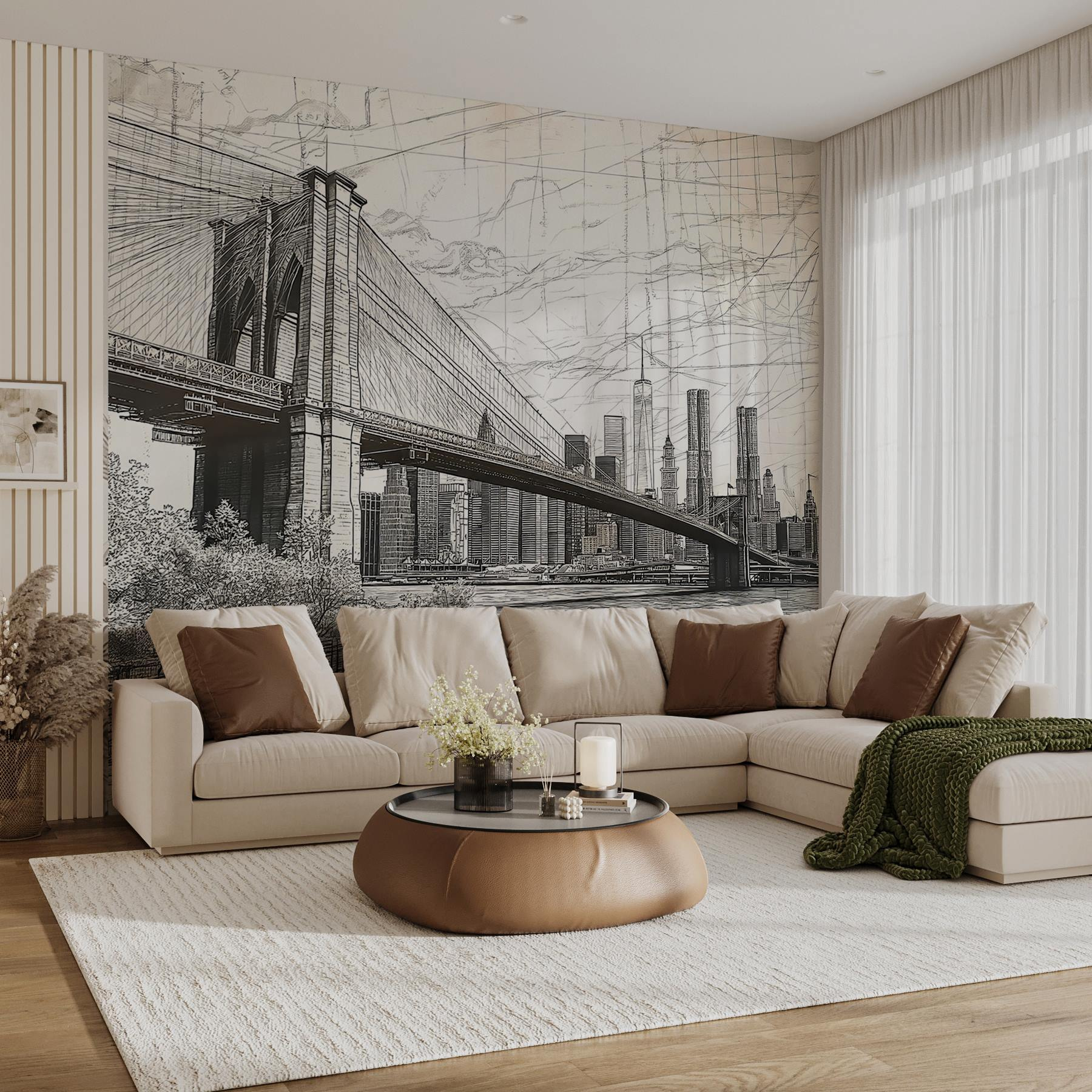 Trasformate il vostro spazio con questo accattivante murale raffigurante un ponte e un paesaggio urbano, un pezzo che porta una dose di fascino urbano direttamente sulle vostre pareti. Immaginate di guardarlo mentre sorseggiate il vostro caffè mattutino, con un pizzico di avventura nell’aria, proprio come le passeggiate domenicali lungo il fiume. Le linee intricate catturano il trambusto della vita cittadina, ma in qualche modo la rendono serena. È perfetto per stimolare conversazioni o semplicemente per sognare ad occhi aperti i luoghi in cui siete stati o volete andare. Lasciate che questo murale faccia da sfondo ai vostri momenti quotidiani: chissà, potrebbe ispirare la vostra prossima grande avventura!