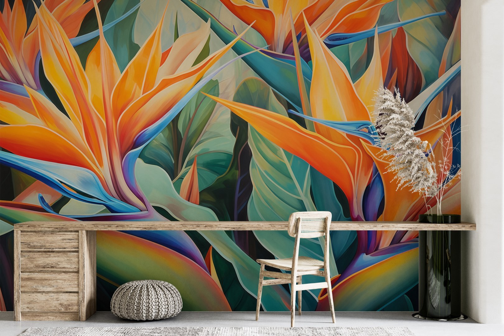 Trasformate il vostro spazio con il murale “Bright Blooms”, una vibrante esplosione di colore che praticamente grida primavera. Immaginatevi di entrare in una stanza ed essere accolti dalla vivace danza di fiori arancioni e blu, ogni petalo che sembra sussurrare segreti di brezze tropicali. È come portare un giardino in casa senza bisogno di avere il pollice verde o di innaffiare occasionalmente.