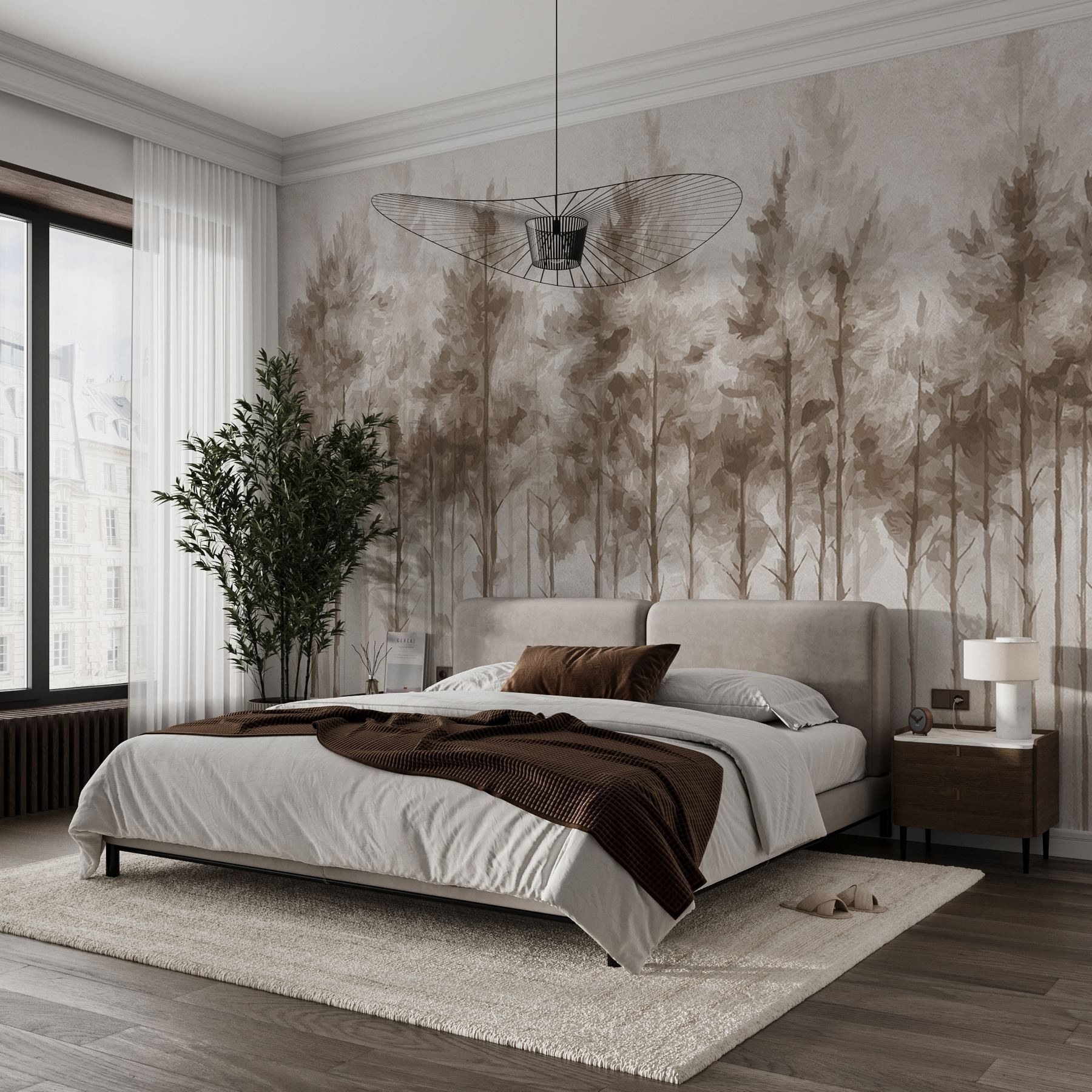 Immaginate di entrare nel vostro spazio accogliente e di essere accolti dalla dolce presenza di una foresta. Questo murale, “Gruppo di alberi in una foresta”, trasforma qualsiasi stanza in una fuga serena. I toni morbidi e terrosi evocano la calma, come se si stesse sorseggiando un tè in un rifugio nel bosco. Immaginatelo dietro la vostra poltrona da lettura preferita, che invita a trascorrere pomeriggi pigri e pieni di avventure da libro di fiabe. Le delicate betulle si ergono alte, sussurrando i segreti della bellezza della natura. È come avere un tranquillo falò in casa: non servono marshmallow, ma solo un senso di pace. Perfetto per chi ama un tocco di natura senza gli insetti, vero?
