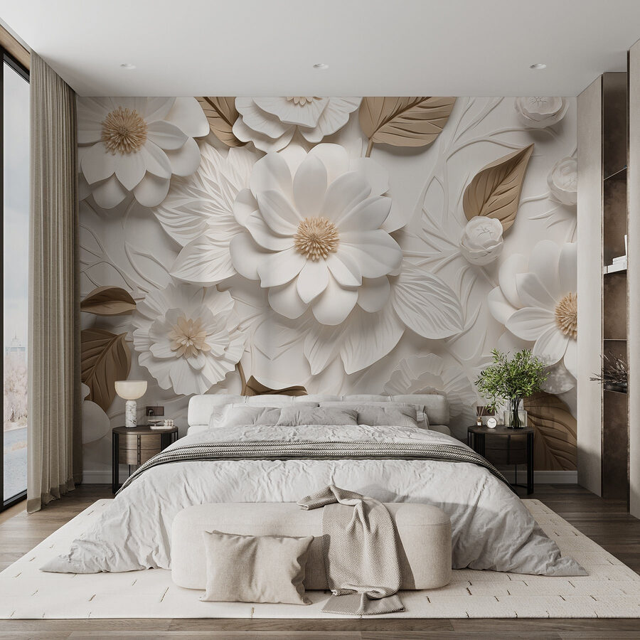 Trasformate qualsiasi spazio con questo splendido murale con fiori bianchi e marroni avvolti da foglie delicate. Immaginate di entrare in una stanza immediatamente più accogliente, come se la natura avesse deciso di accoccolarsi sulle vostre pareti! I toni delicati creano un’atmosfera serena, perfetta per qualsiasi ambiente, dalla camera da letto rilassante al soggiorno vivace.