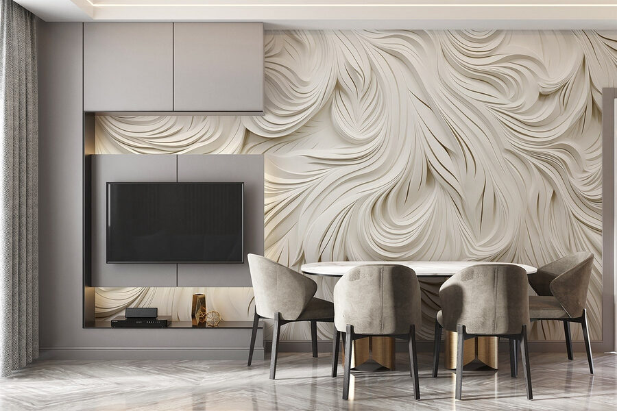 Trasformate qualsiasi stanza in una fuga da sogno con questo accattivante murale. Caratterizzato da intricate linee ondulate che sembrano quasi scorrere come dolci onde, dona un senso di movimento e serenità al vostro spazio. Immaginate di entrare nella vostra stanza e di essere accolti, invece che dalle solite pareti insipide, da un disegno morbido e scultoreo che calma immediatamente la mente. È come un accogliente abbraccio per le vostre pareti. Questo murale potrebbe ispirare la creatività al lavoro o semplicemente essere lo sfondo perfetto per una serata tranquilla a casa. Perfetto per chi desidera un tocco di unicità!