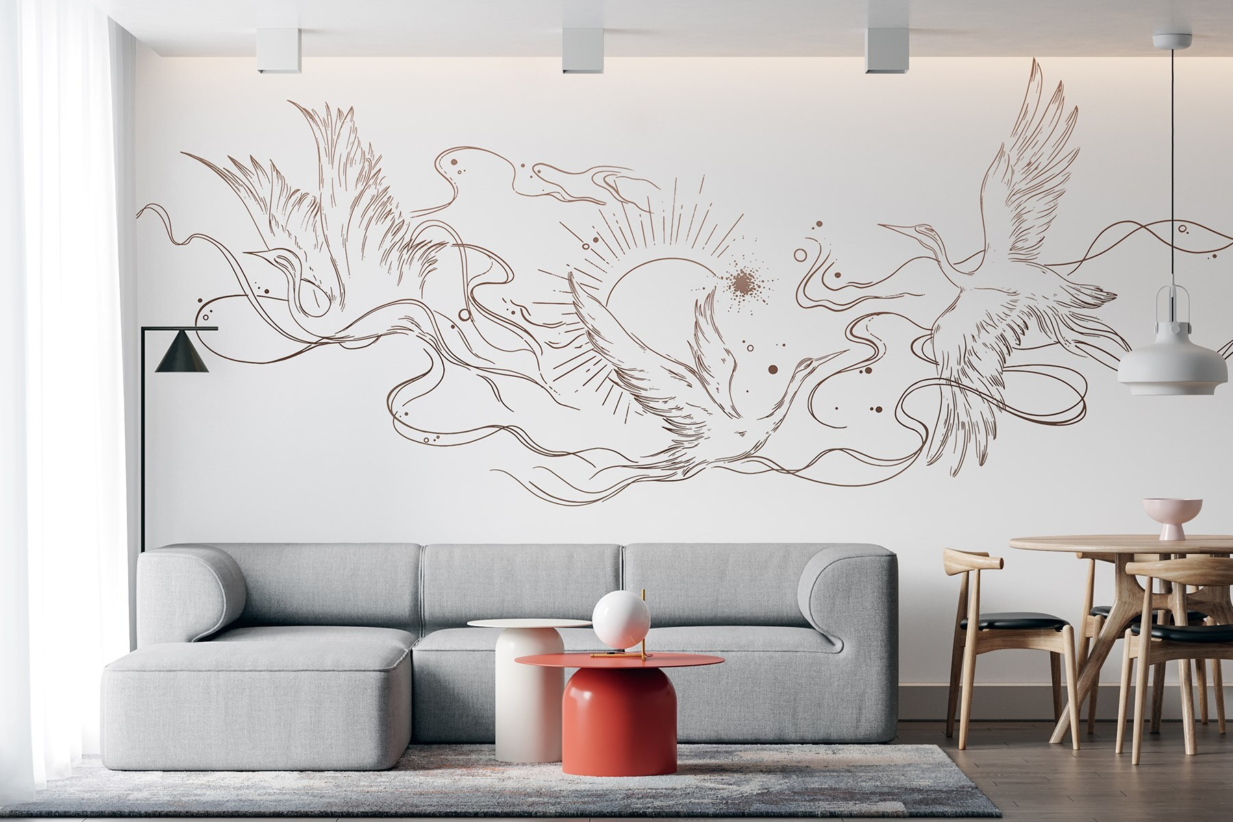 Trasformate le vostre pareti in una fuga serena con questo delizioso murale con uccelli che danzano alla luce del sole. Le linee dolci e le sfumature delicate danno vita a qualsiasi spazio, rendendolo accogliente e invitante. Immaginate di svegliarvi con questa scena allegra: è come avere un piccolo pezzo di natura proprio a casa. Perfetto per un salotto o anche per una cameretta da sogno, avvolge la stanza con calore e fantasia. Gli amici penseranno che avete un’atmosfera da galleria d’arte: forse significa che è il caso di organizzare una serata a base di vino, giusto? Aggiungete questo murale e lasciate che le vostre pareti raccontino una storia di gioia e libertà.