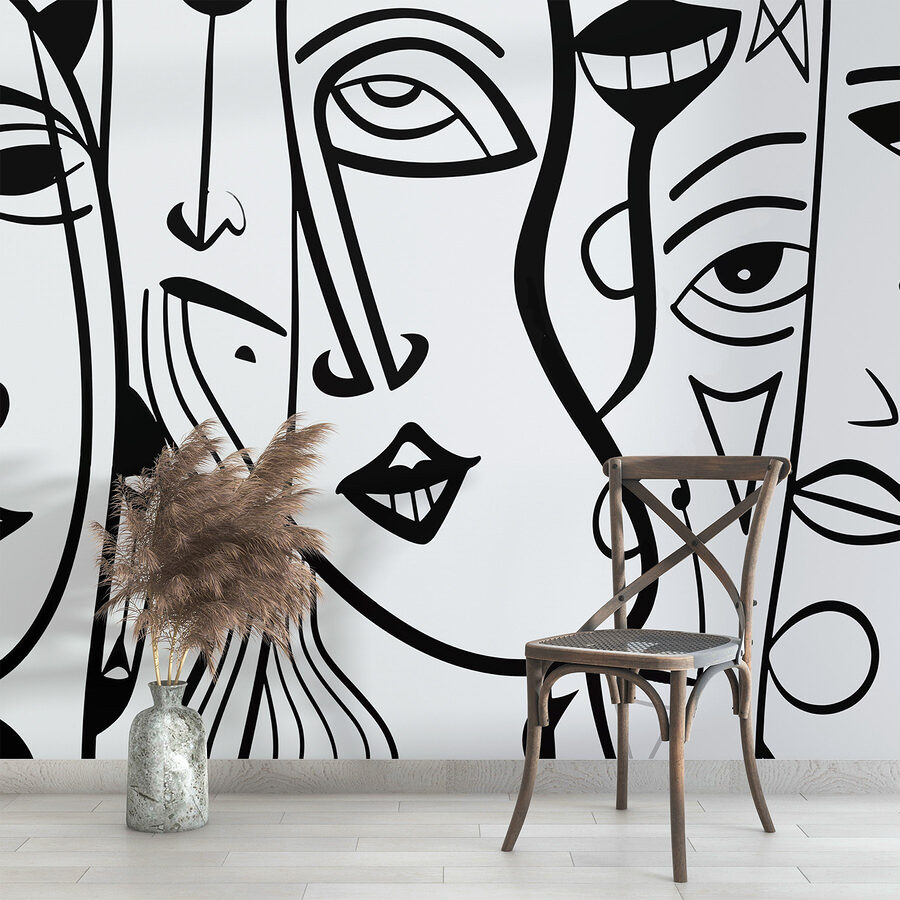 Trasformate il vostro spazio con questo accattivante murale in bianco e nero, caratterizzato da un mix di volti espressivi. È come avere una galleria d’arte nel vostro salotto, ma senza l’atmosfera pretenziosa. Le linee decise e le forme giocose invitano alla conversazione: immaginate gli amici che si fermano a metà frase per ammirarlo, cercando di decifrare le emozioni congelate in quelle espressioni stravaganti.