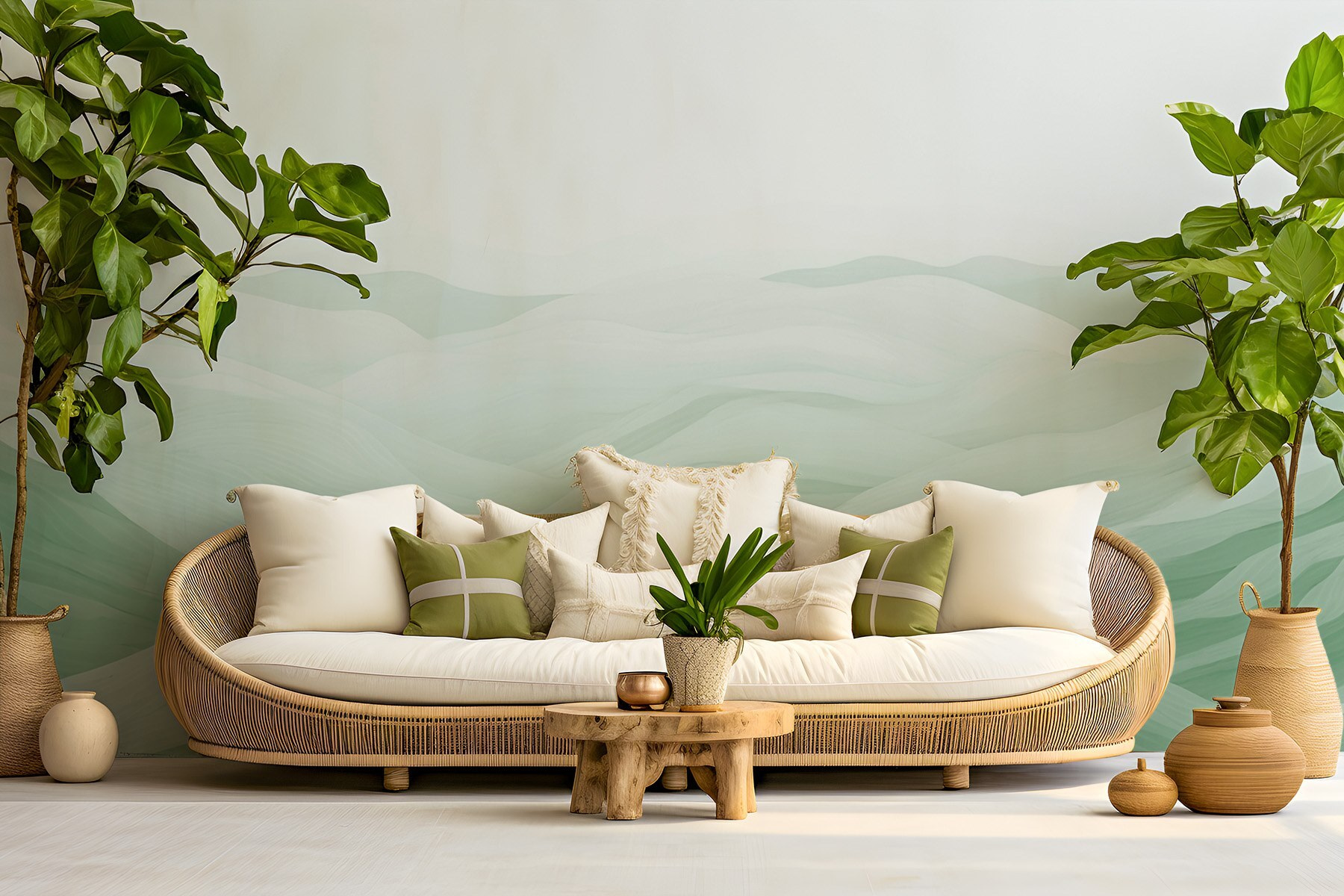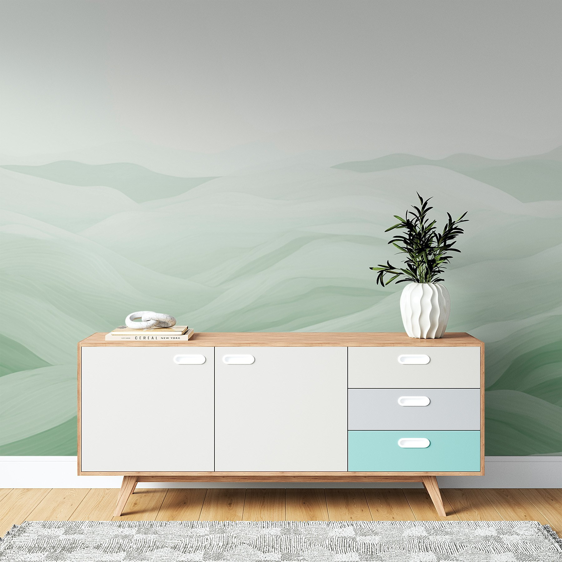 Immaginate di immergervi in un paesaggio sereno e sognante ogni volta che guardate la vostra parete. Questo murale, con le sue dolci tonalità di verde e le sue forme morbide e fluide, invita a un’atmosfera pacifica in qualsiasi stanza. Immaginatelo mentre illumina un angolo accogliente o funge da splendido sfondo per il vostro angolo lettura. Il sottile effetto acquerello aggiunge un tocco di bizzarria, facendo pensare a un giardino segreto o a una mattina nebbiosa. È come portare una fetta di natura in casa, perfetta per quei giorni in cui non è possibile inseguire i tramonti all’aperto. Perfettamente sobrio, ma così accattivante!