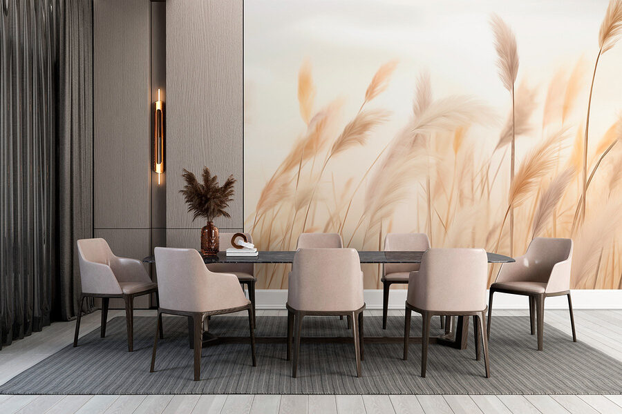 Immaginate di entrare in un dolce prato, dove le morbide erbe ondeggiano pigramente nella brezza. Questa è l’atmosfera che questo murale porta nel vostro spazio! Con i suoi toni tenui e sognanti, sembra un sussurro della natura, perfetto per rendere ogni stanza calma e accogliente.