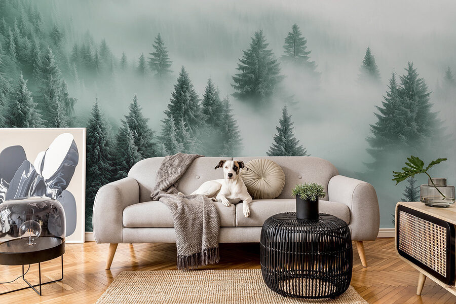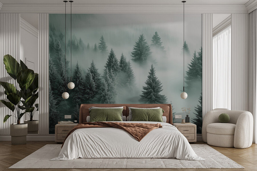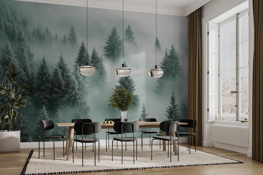 Immaginate di entrare in una baita accogliente, calda e invitante, e poi… ecco che vi accoglie questo splendido murale di alberi nella nebbia. È come portare la natura nel vostro salotto, ma senza il rischio che uno scoiattolo si imbatta nella vostra festa. Il verde tenue e le vibrazioni nebbiose rendono tutto tranquillo e sereno, perfetto per le domeniche pigre o dopo una lunga giornata. Immaginatevi di sistemarvi con un buon libro, una perfetta tazza di tè in mano e di perdervi in questo paesaggio da sogno. È anche un argomento di conversazione: gli ospiti saranno incuriositi. È una foresta magica? Un portale segreto? Decidete voi. Aggiungere questo murale è come condividere una piccola fetta di tranquillità con chiunque entri nel vostro spazio.