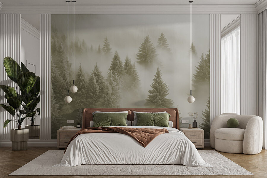 Immaginate di entrare in una foresta serena, dove gli alberi si ergono alti, avvolti da una leggera nebbia. Questo murale, “Gruppo di alberi nella nebbia”, cattura perfettamente questa atmosfera tranquilla. È come portare un pezzo di natura in casa senza dover innaffiare nulla: una manutenzione bassissima!