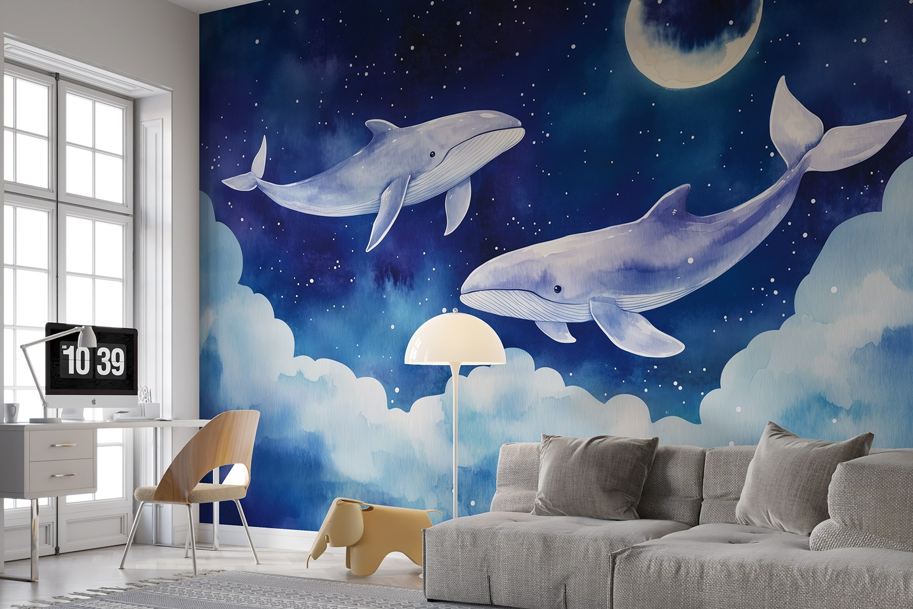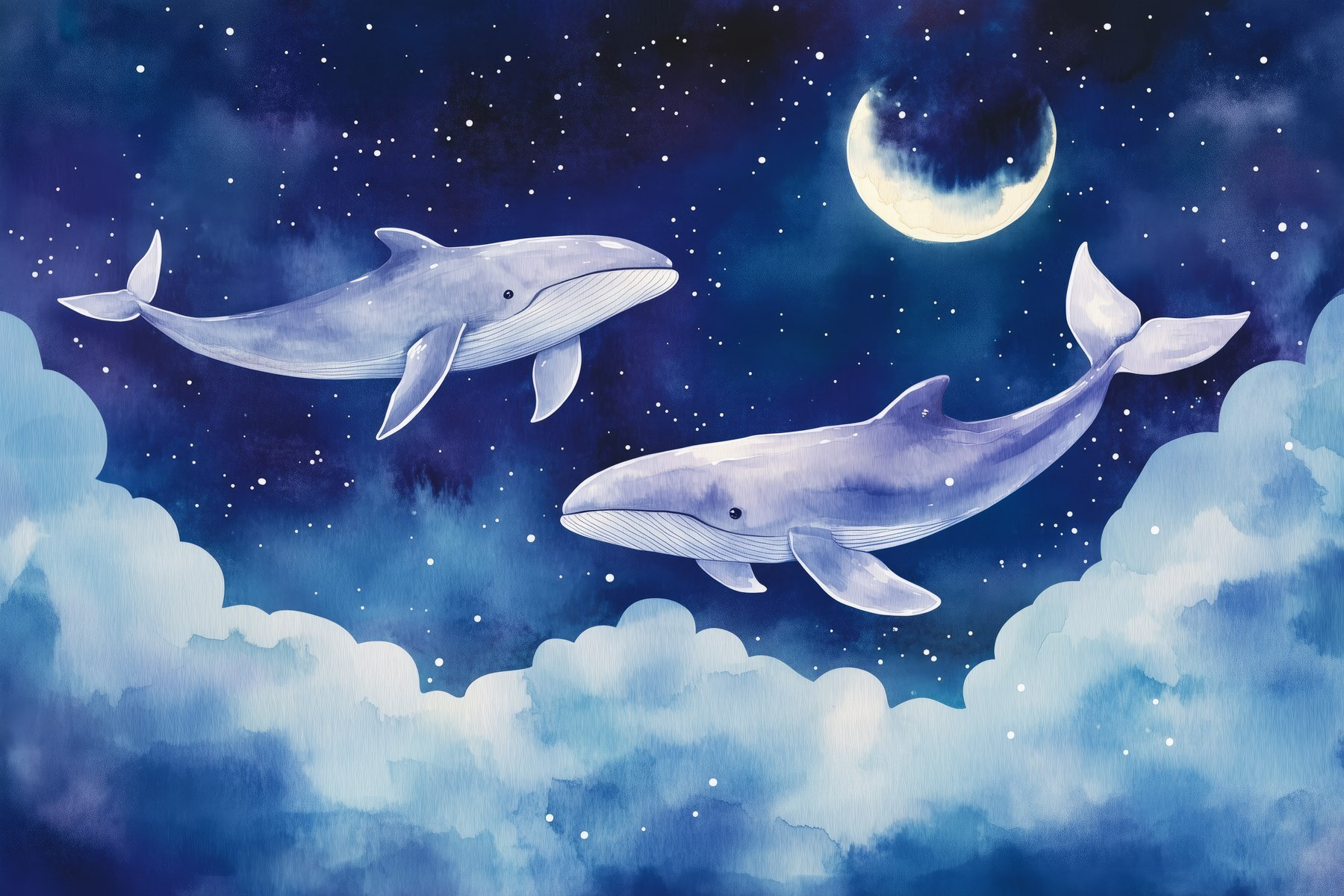 Trasformate qualsiasi spazio in una fuga da sogno con il murale “Two Whales in the Sky”. Immaginatevi questi giganti gentili che scivolano in una distesa crepuscolare, circondati da nuvole stellate e da una luna amica. È come invitare un pezzo di oceano nella vostra casa, senza l’odore di alghe. Perfetto per le atmosfere balneari o per un angolo accogliente, questo murale dona un tocco di estrosità e serenità, diventando così un argomento di conversazione per gli ospiti. Immaginate di sorseggiare un caffè fissando le balene e chiedendosi cosa stiano sognando. Un tocco incantevole per chi cerca un po’ di magia nel proprio arredamento!