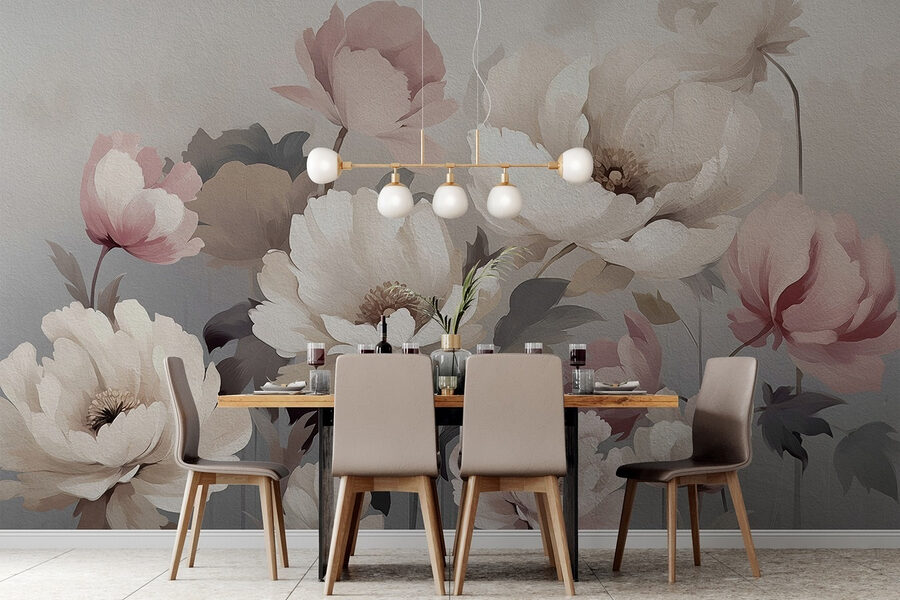 Trasformate qualsiasi spazio con questo splendido murale dipinto con fiori delicati, una miscela perfetta di peonie e rose. Immaginate di entrare in una stanza dove i toni tenui del blush e del bianco crema sbocciano sulla parete, aggiungendo immediatamente calore e carattere. È come avere un giardino in casa, senza bisogno di annaffiare!