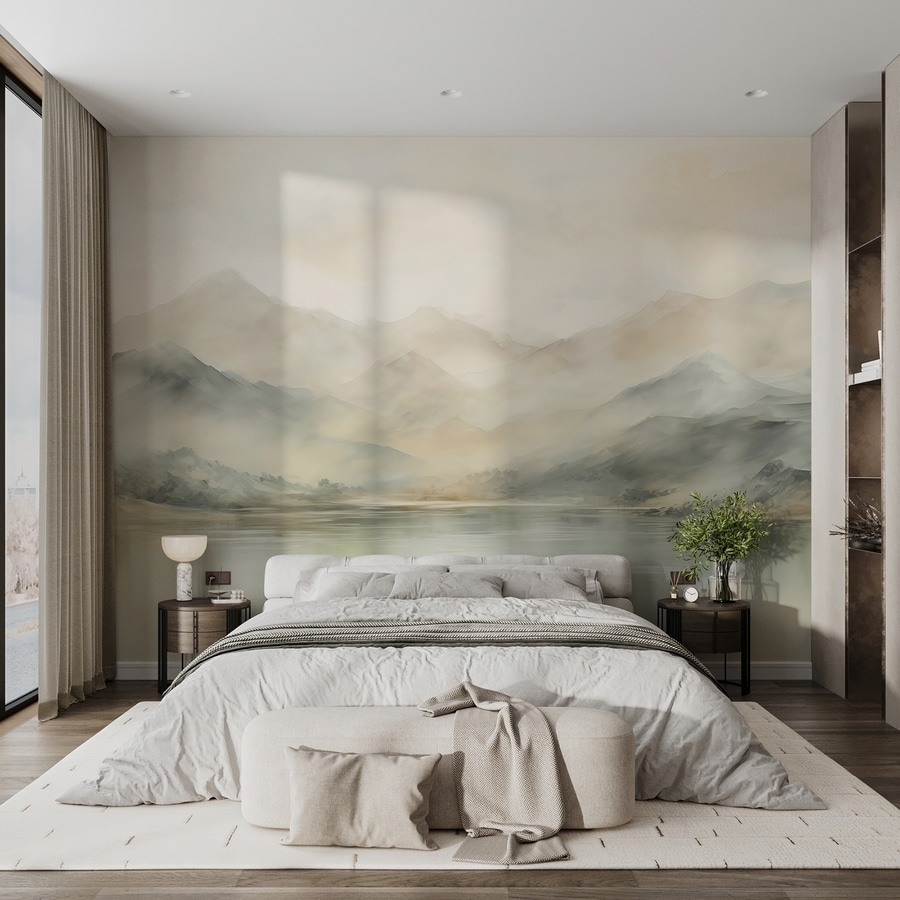 Trasformate qualsiasi parete in una fuga serena con questo splendido murale di acqua e montagne lontane. Immaginate di guardare le tinte tenui che si fondono insieme, presentando una scena calma e quasi onirica. È come una vacanza in miniatura nel vostro salotto. Perfetto per rilassarsi dopo una lunga giornata o per iniziare a sognare avventure escursionistiche. I tratti delicati evocano sensazioni di pace, ideali per un accogliente angolo di lettura o anche per una vivace cena. Immaginate le conversazioni che scorrono, mentre questa bellezza fa da sfondo perfetto. Non è solo arredamento, è un invito a rilassarsi.