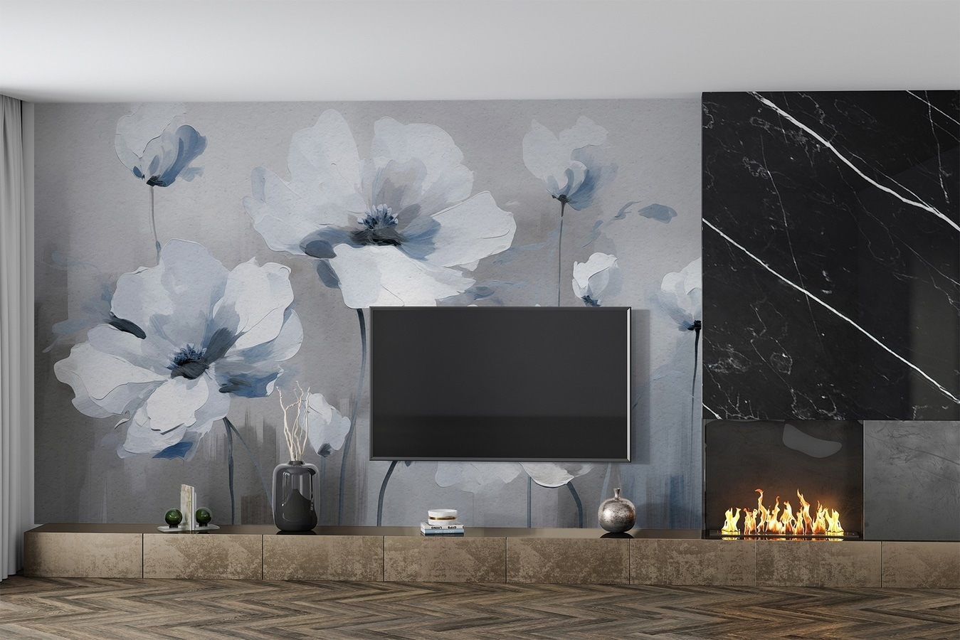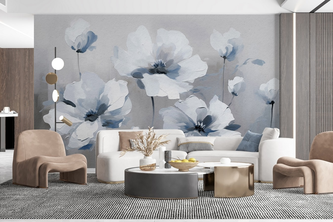 Trasformate il vostro spazio con questo splendido murale di fiori bianchi, una boccata d’aria fresca che porta la bellezza della natura all’interno. Ogni fiore delicato sembra ondeggiare in una leggera brezza, immerso in morbide tonalità di grigio e bianco: un’atmosfera di pace! Immaginatelo in un accogliente angolo lettura o in un luminoso corridoio; è come avere un giardino sulla parete. Potrebbe stimolare conversazioni o semplicemente aiutare a rasserenare l’anima dopo una lunga giornata. Inoltre, l’effetto acquerello aggiunge un tocco d’arte: chi non lo desidera? Perfetto per chi vuole elevare il proprio livello di arredamento, il fascino di questo murales sboccerà sicuramente in qualsiasi stanza. Davvero, potrebbe trasformare una parete scialba in una mini oasi. Immaginate di sorseggiare un caffè nelle vicinanze, immergendovi in tutte quelle sensazioni rilassate e floreali!