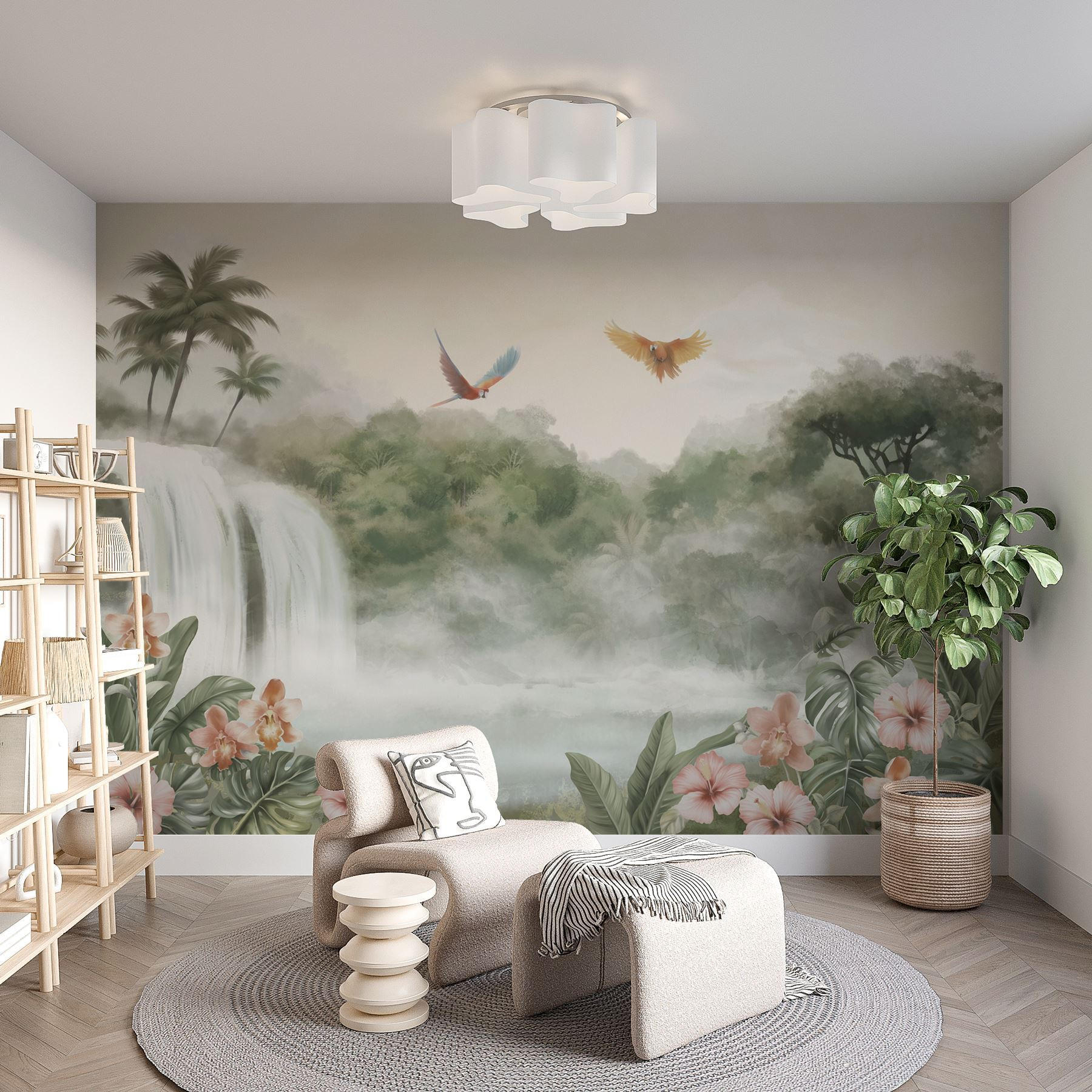 Trasformate qualsiasi spazio in un sereno paradiso tropicale con questo splendido murale a cascata con uccelli vivaci che si librano sopra la vegetazione lussureggiante. Immaginate di entrare ogni giorno in un’oasi di pace, mentre il dolce suono dell’acqua a cascata vi riempie la mente. I delicati fiori rosa fanno capolino tra il fogliame, aggiungendo un tocco di colore perfetto per ravvivare un angolo accogliente o per fare una dichiarazione audace su una parete caratteristica. È come portare una fetta di natura in casa, senza bisogno di scarponi da trekking! Ideale per gli amanti della natura, questo murale invita a fermarsi, respirare e godersi un piccolo pezzo di tranquillità proprio a casa. Inoltre, potrebbe ispirare sogni ad occhi aperti di vacanze tropicali, anche se fuori fa freddo. Abbracciate la bellezza e lasciate che le vostre pareti raccontino una storia!