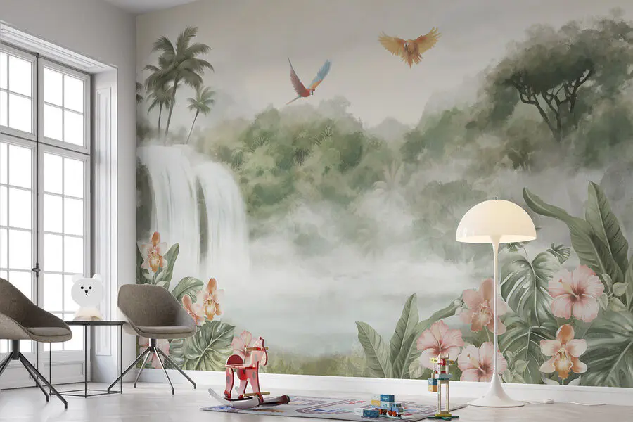 Trasformate qualsiasi spazio in un sereno paradiso tropicale con questo splendido murale a cascata con uccelli vivaci che si librano sopra la vegetazione lussureggiante. Immaginate di entrare ogni giorno in un’oasi di pace, mentre il dolce suono dell’acqua a cascata vi riempie la mente. I delicati fiori rosa fanno capolino tra il fogliame, aggiungendo un tocco di colore perfetto per ravvivare un angolo accogliente o per fare una dichiarazione audace su una parete caratteristica. È come portare una fetta di natura in casa, senza bisogno di scarponi da trekking! Ideale per gli amanti della natura, questo murale invita a fermarsi, respirare e godersi un piccolo pezzo di tranquillità proprio a casa. Inoltre, potrebbe ispirare sogni ad occhi aperti di vacanze tropicali, anche se fuori fa freddo. Abbracciate la bellezza e lasciate che le vostre pareti raccontino una storia!