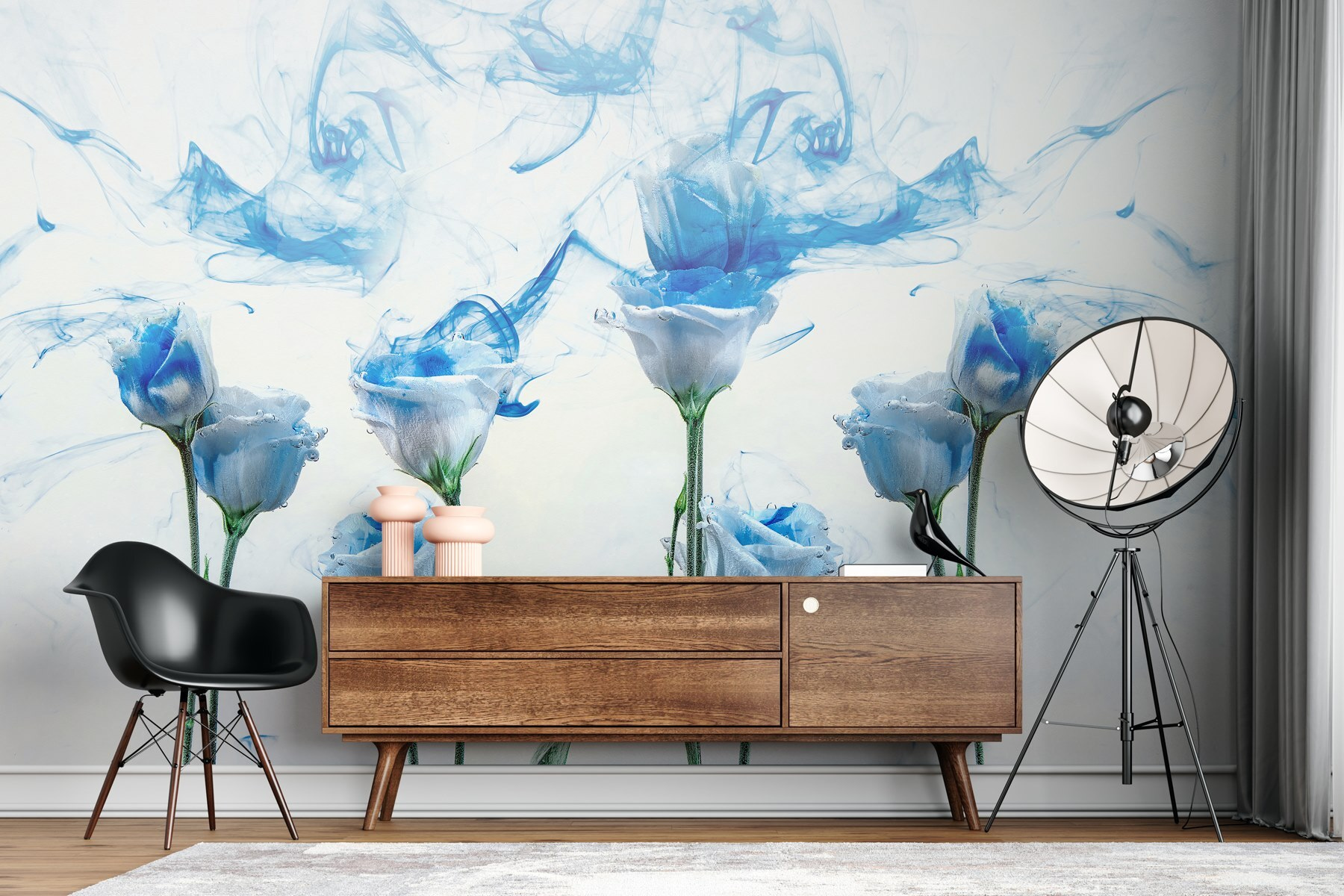 Trasformate il vostro spazio con questo splendido murale con un gruppo di fiori da sogno, splendidamente intrecciati con inchiostro blu che vortica nell’acqua. Immaginate di entrare in una stanza e di sentirvi trasportati in un giardino tranquillo: chi non lo vorrebbe? Queste splendide rose, con le loro tonalità tenui, aggiungono un tocco di eleganza ed estrosità. Perfetto per ravvivare un salotto o per creare un’atmosfera serena in una camera da letto, questo murale emana un’atmosfera rinfrescante che farà chiedere a tutti: “Dove l’hai preso?”. È come una boccata d’aria fresca per le vostre pareti.