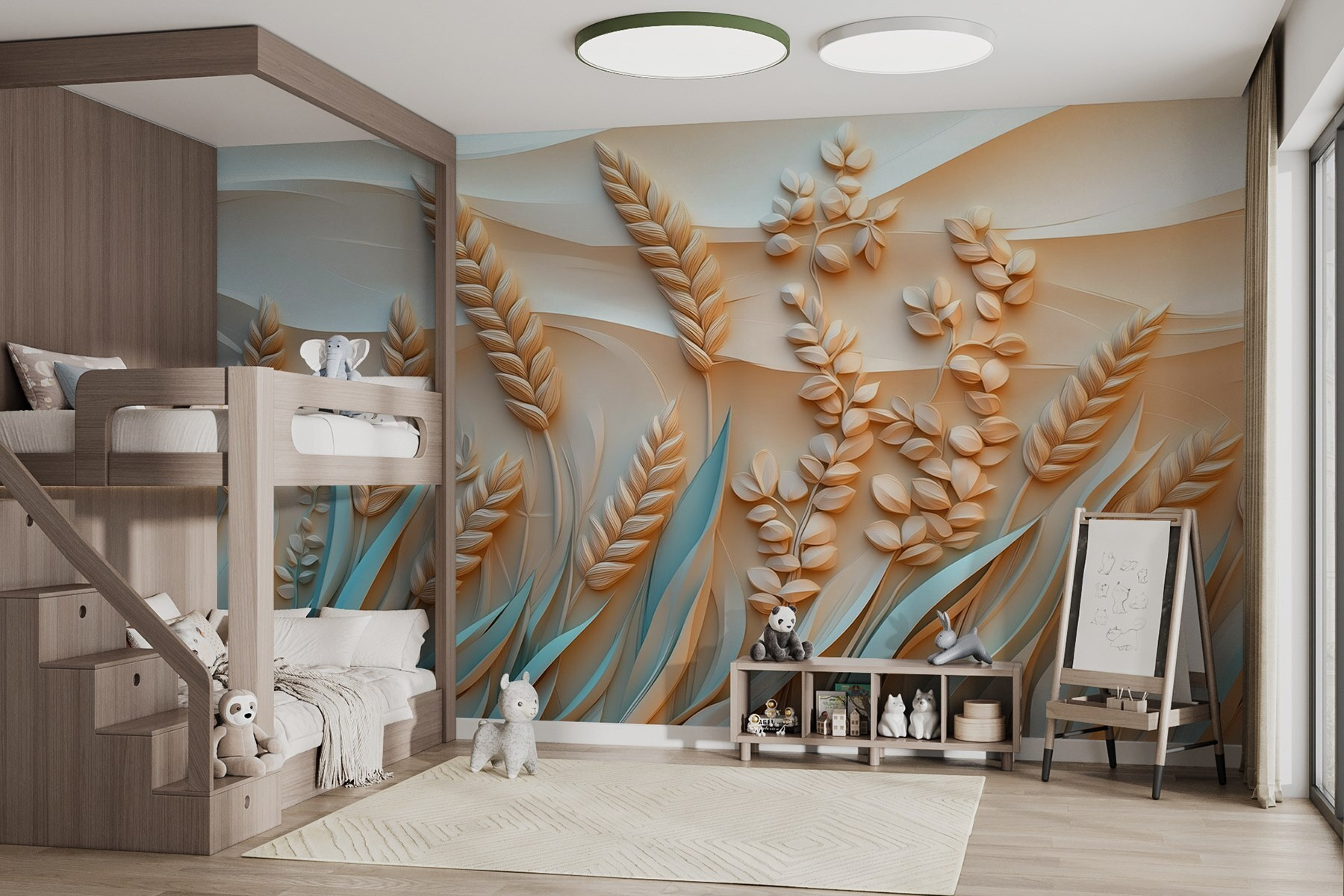 Trasformate il vostro spazio con l’incantevole murale “Piante e foglie di grano”. Immaginate un campo sereno, che ondeggia dolcemente nella brezza, portando un tocco di natura all’interno. Le tinte tenui e le forme aggraziate del grano e delle foglie emanano un’atmosfera rilassante. È come avere una piccola fetta di campagna proprio a casa. Immaginate di sorseggiare un caffè guardando questi deliziosi disegni, sentendo un legame immediato con la natura. Perfetto per un angolo accogliente o per uno spazio di lavoro stimolante, questo murale aggiunge calore senza essere invadente. È un simpatico richiamo alla semplicità, che invita al relax e alla pace.
