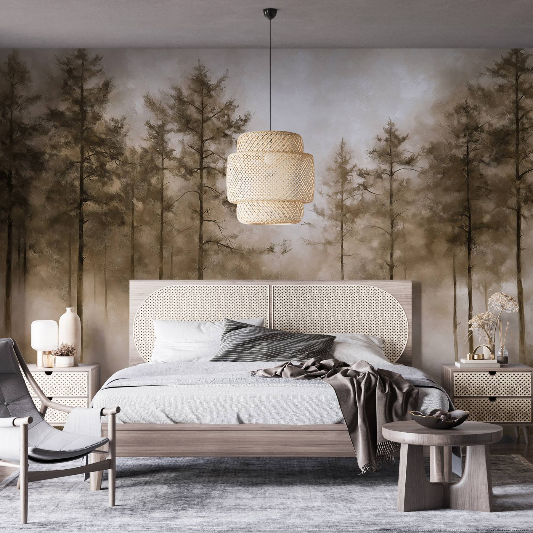 Entrate in una fuga da sogno con il murale “Foresta nebbiosa con alberi”. È come portare un accogliente pezzo di natura nel vostro salotto, senza bisogno di scarponi da trekking! Immaginate di svegliarvi, sorseggiare un caffè e sentirvi circondati da pini che sussurrano e da una leggera nebbia. I toni morbidi e tenui creano una calma perfetta, quasi come in una giornata di pioggia. Gli ospiti potrebbero persino pensare che abbiate un lato selvaggio segreto. Immaginateli mentre si perdono in questa atmosfera serena e magari condividono i loro racconti sulla natura. Questo murale trasforma qualsiasi spazio con un tocco di magia e un pizzico di bizzarria, perfetto per chi cerca una boccata d’aria fresca in casa!