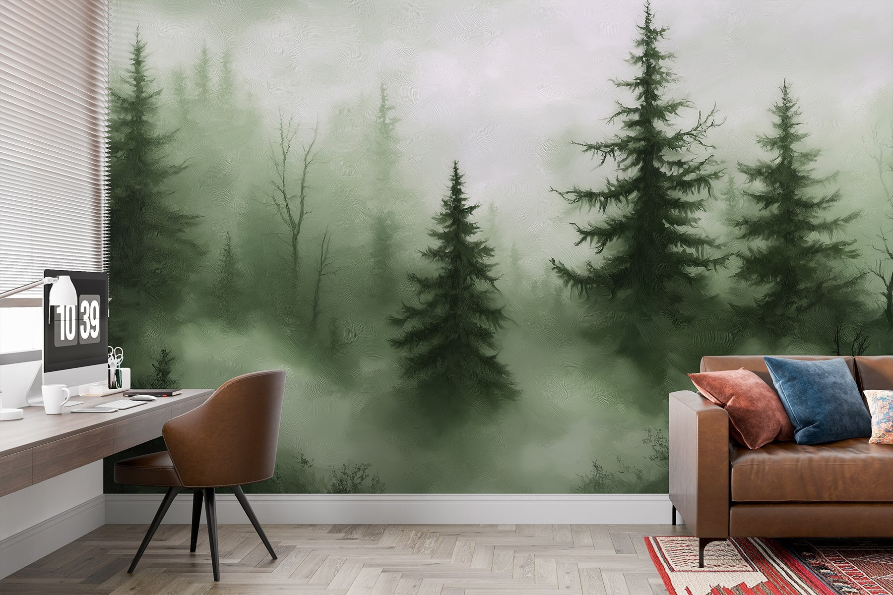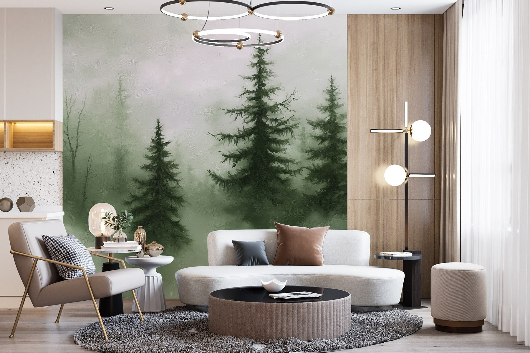 Entrate in una fuga da sogno con il murale “Foresta nebbiosa con alberi”. Immaginate di sorseggiare il vostro caffè mattutino circondati da una tranquilla foresta nebbiosa, dove gli alberi svettanti sembrano in qualche modo sussurrare segreti. Questo disegno porta una fetta di natura in casa vostra, perfetta per creare un angolo accogliente o un rifugio tranquillo. I verdi tenui e le texture morbide invitano alla calma, quasi come un abbraccio di Madre Natura. Inoltre, non c’è bisogno di scarponi da trekking o spray per insetti! Basta sedersi, rilassarsi e lasciare che siano le pareti a parlare.
