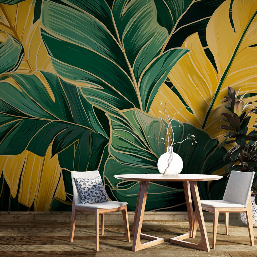 Portate l’aria aperta in casa vostra con questo splendido murale, “Vibrant Foliage in Yellow and Green”. Immaginate di svegliarvi ogni giorno con un’oasi tropicale proprio nel vostro salotto. Le foglie gialle e verdi spiccano come se fossero state appena baciate dal sole. È come una mini-vacanza sulla vostra parete! Gli amici si chiederanno se avete un giardino segreto nascosto sul retro.