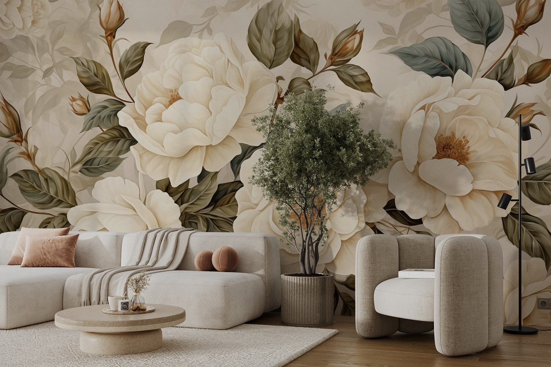 Trasformare una stanza in un’oasi accogliente è un gioco da ragazzi con “Delicate Blooms in Soft Tones”. Immaginate di entrare in uno spazio in cui le peonie color crema sbocciano senza sforzo sulle pareti, avvolgendovi in tonalità morbide che fanno quasi sognare. È come avere un giardino personale, senza le fastidiose api. Perfetto per quei giorni in cui si desidera sorseggiare un tè, accoccolarsi con un buon libro o sognare ad occhi aperti i picnic di primavera.