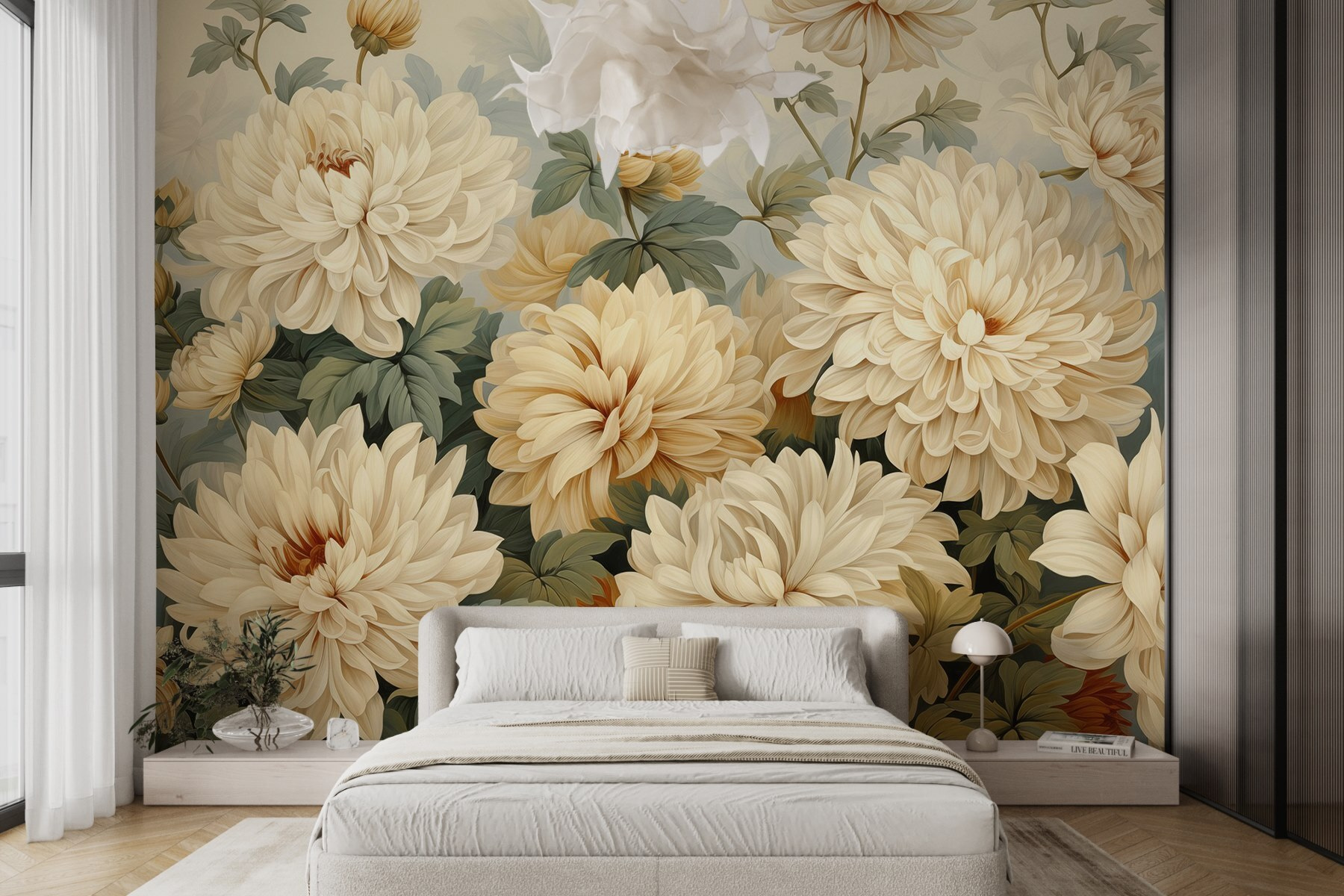 Che si tratti di un angolo accogliente o di un’ampia zona giorno, questo murale aggiunge un tocco di fascino senza attirare l’attenzione. È come un abbraccio floreale per le vostre pareti, che invita al calore e al comfort. Ad ogni sguardo sembra di camminare in un giardino tranquillo, dove le preoccupazioni sembrano svanire. E chi non lo vorrebbe?