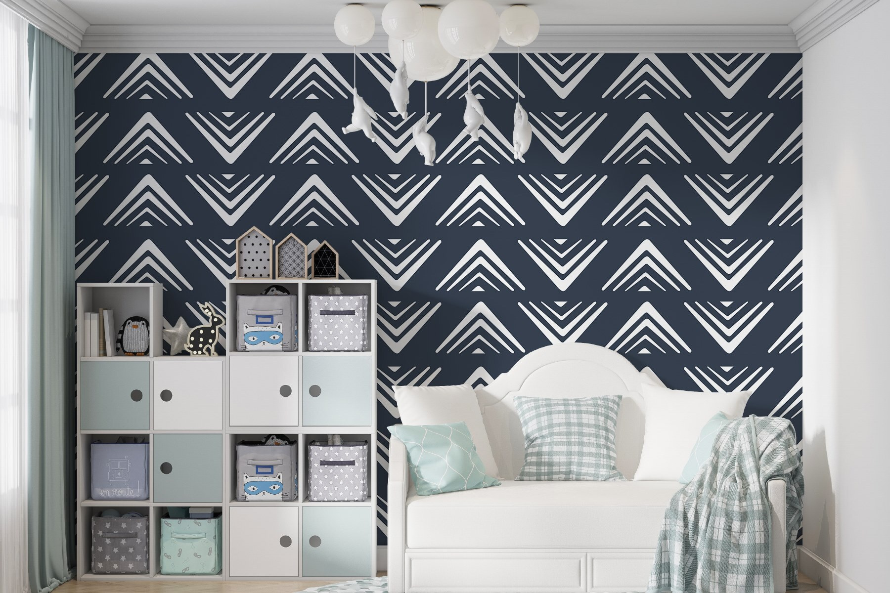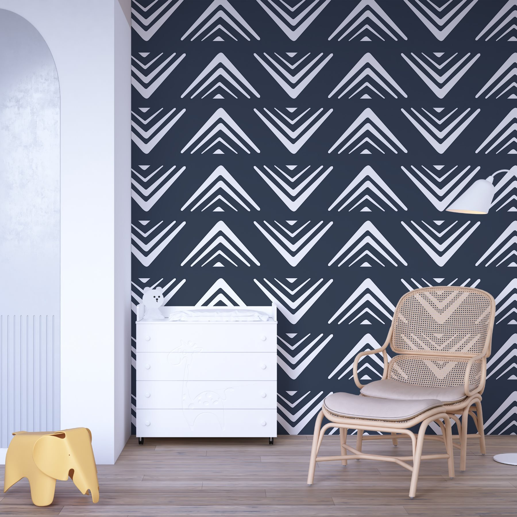 Trasformate il vostro spazio con il “Carta da parati Pattern of Triangles”. Questo disegno è un invito segreto alla conversazione: immaginate gli ospiti che ammirano le eleganti vibrazioni geometriche mentre sorseggiano il caffè. I triangoli bianchi spiccano su uno sfondo blu profondo, creando un ritmo che danza sulle pareti. È audace ma rilassante, il giusto equilibrio per un salotto accogliente o un ufficio chic. Immaginate di sprofondare in una poltrona con questo murale alle spalle, sentendovi ispirati e pieni di energia. Chi ha bisogno di gallerie d’arte quando sono le vostre pareti a parlare? Un tocco di stile contemporaneo che non si limita a decorare, ma eleva l’intera atmosfera!
