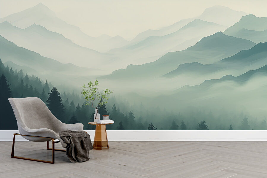 Trasformate il vostro spazio con questo incantevole murale con un paesaggio montano nebbioso baciato da alberi gentili. Immaginate di svegliarvi con le tonalità calme delle montagne, come se il sussurro della natura salutasse ogni giorno. La morbida nebbia avvolge le cime, creando uno sfondo quasi da sogno, perfetto per mattinate accoglienti o serate tranquille con una tazza di tè.