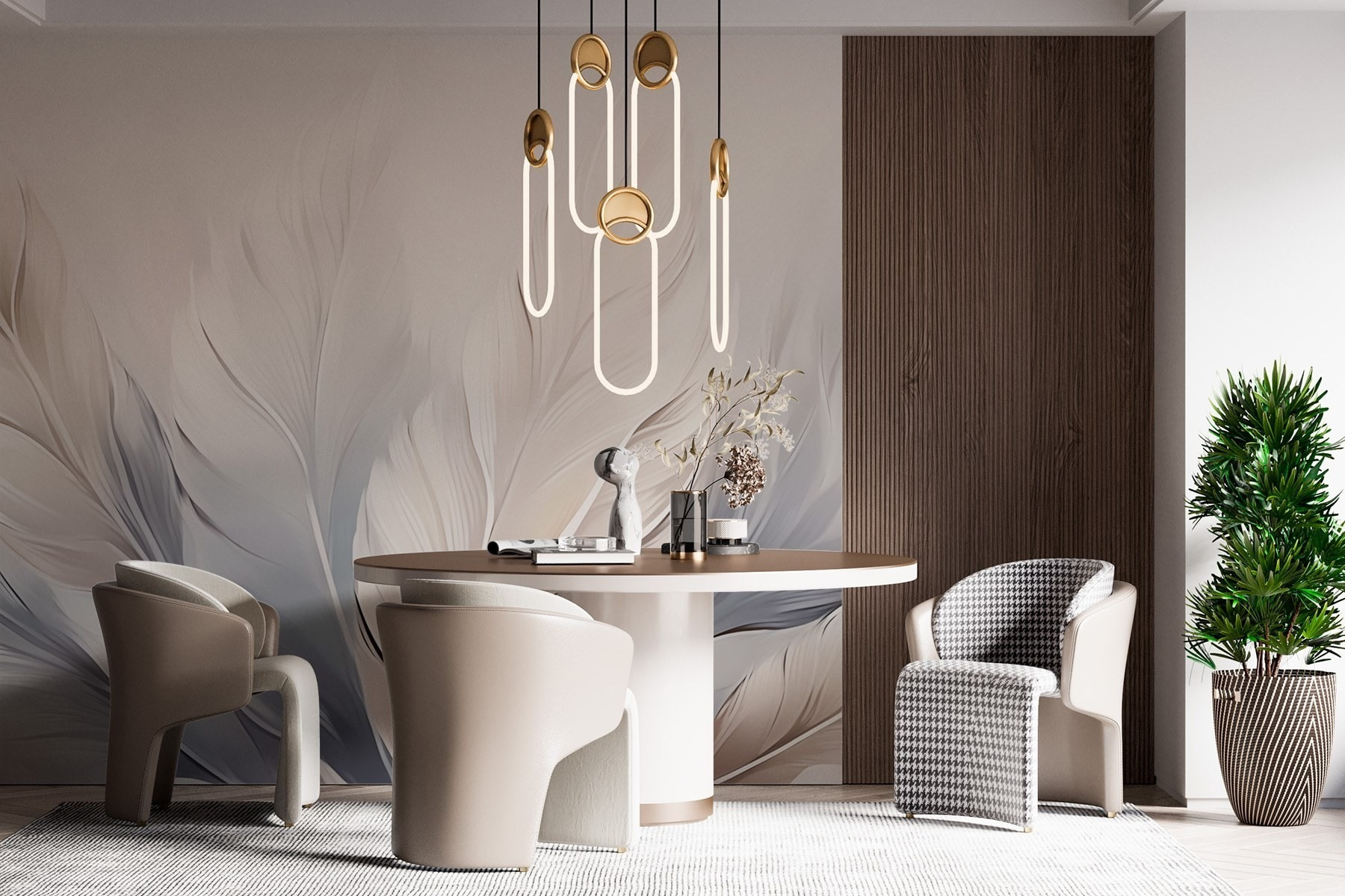 Sia che si tratti di un accogliente angolo lettura o di una sofisticata zona pranzo, questo murale ne esalta l’atmosfera senza sforzo. È tutta una questione di sensazioni calde e confuse, giusto? Inoltre, è un fantastico spunto di conversazione. Gli amici potrebbero rimanere incantati e chiedersi come fare per ottenere un look così accogliente. Con un tocco di natura in casa, ogni sguardo porta un sorriso. Lasciate che il fascino di queste piume avvolga il vostro spazio nella tranquillità!