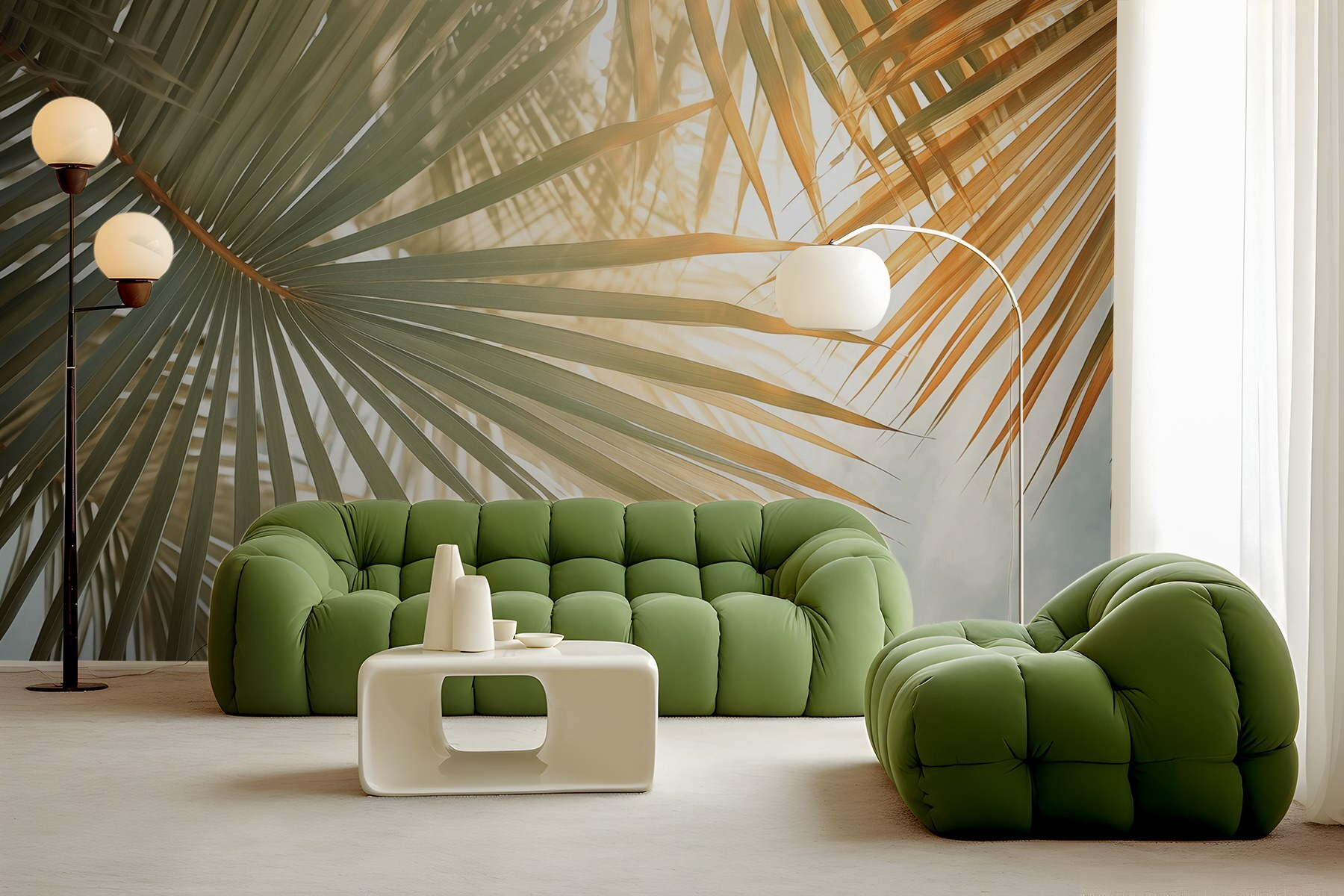 Trasformate il vostro spazio in una fuga tropicale con il murale “Serene Palm Leaves in Soft Light”. Immaginate di entrare nella vostra stanza e di sentirvi come se foste appena entrati in un paradiso assolato. Le delicate foglie di palma filtrano morbidi raggi di sole, creando un’atmosfera rilassante che sussurra relax. È perfetto per gli spazi che desiderano un tocco di natura, come un accogliente angolo lettura o una camera da letto serena.