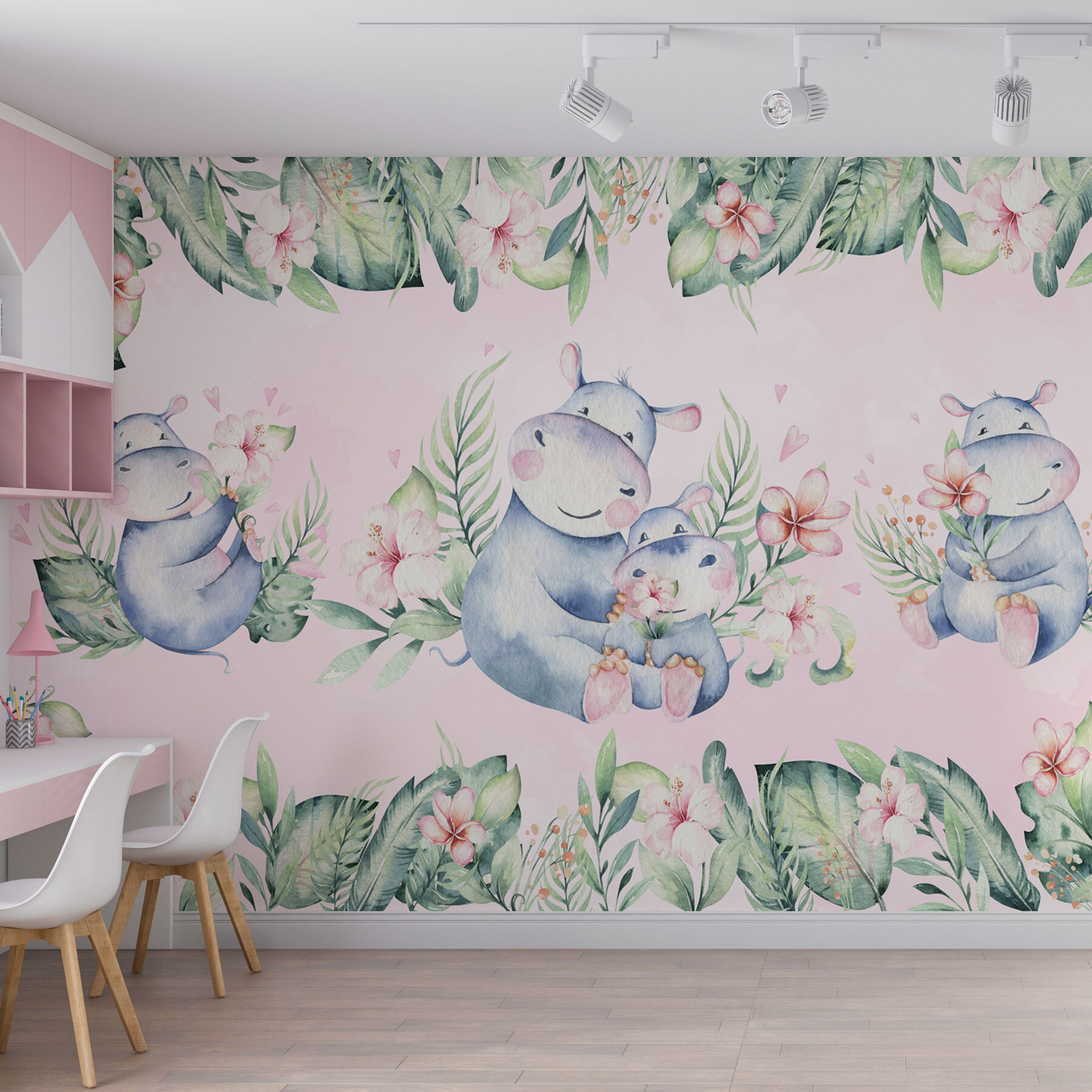 Trasformate il vostro spazio con questo delizioso murale che mostra affascinanti ippopotami acquerellati incastonati tra fiori vivaci. Immaginate di entrare in una stanza dove queste adorabili creature sembrano ridacchiare e abbracciare la bellezza della natura, rallegrando immediatamente il vostro umore. Perfetto per le stanze dei bambini o per le aree ludiche, questo murale aggiunge un’atmosfera allegra che sussurra gioia. Il rilassante sfondo rosa lo rende caldo e accogliente. È come avere un pezzetto di savana in casa, dove ogni sguardo porta un sorriso: chi non lo vorrebbe? Inoltre, potrebbe ispirare alcuni divertenti momenti di narrazione!