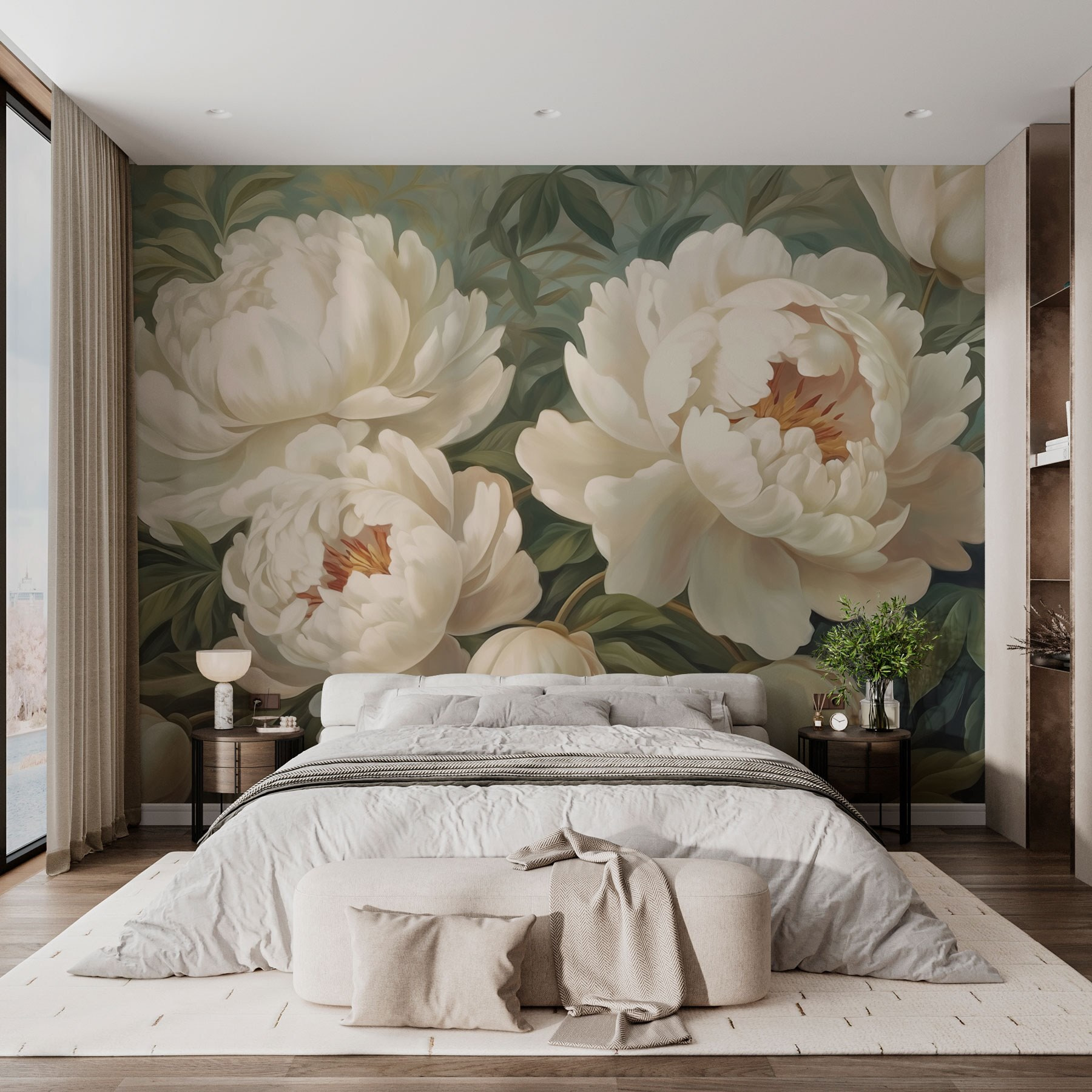 Trasformate qualsiasi ambiente con questo incantevole murale che mette in mostra rigogliose fioriture di delicati petali bianchi. Immaginate di entrare in uno spazio in cui le morbide peonie catturano la luce, facendo sentire l’intero luogo come un sereno rifugio in giardino. È perfetto per quei giorni in cui il mondo esterno sembra un po’ troppo caotico: basta guardarlo e *respirare*.