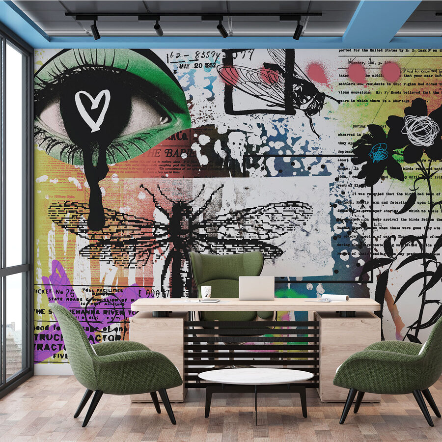 Trasformate il vostro spazio con questo accattivante murale con un vivace collage di libellule e fiori. Immaginate di entrare in una stanza e di sentirvi immediatamente sollevati dalla giocosa esplosione di colori e dai disegni stravaganti. È come se i piccoli segreti della natura prendessero vita sulla vostra parete, accendendo la gioia ogni volta che la guardate. Questo murale non è solo un elemento d’arredo, ma è un punto di conversazione, un punto focale che attira le persone. Che si tratti di un accogliente angolo lettura o di un vivace salotto, questo murale infonde vita e creatività in qualsiasi spazio. Inoltre, chi non amerebbe una libellula che tiene d’occhio le cose?