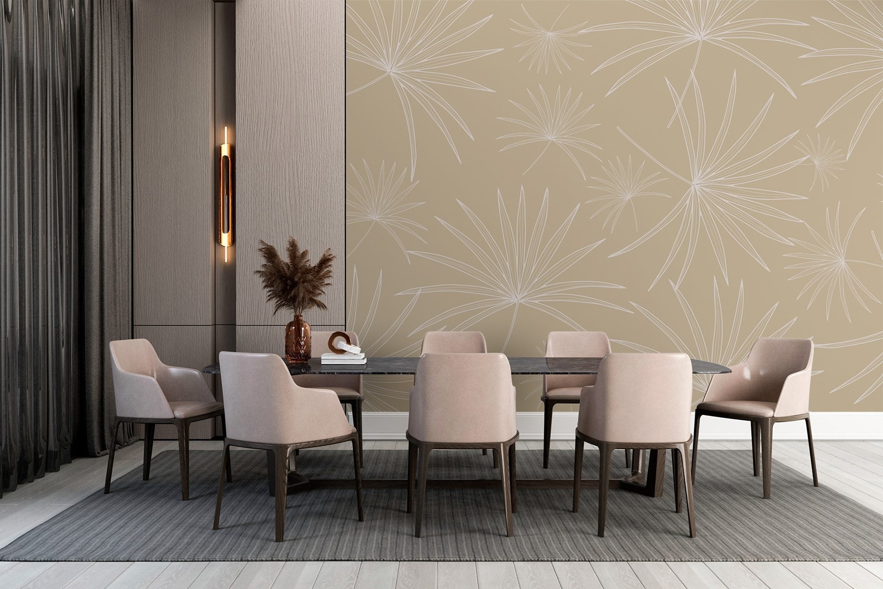 Guardate esattamente come apparirà il vostro spazio con la nuova carta da parati prima di acquistarla. Visualizzazione professionale da parte di designer esperti senza alcun costo o obbligo di acquisto.