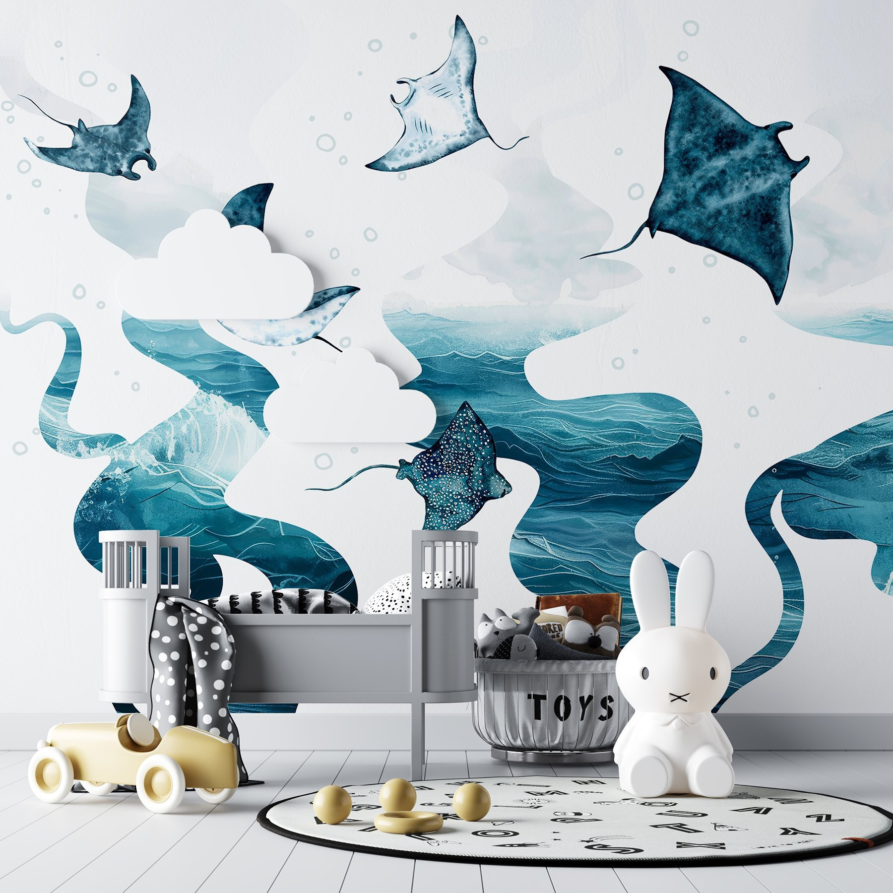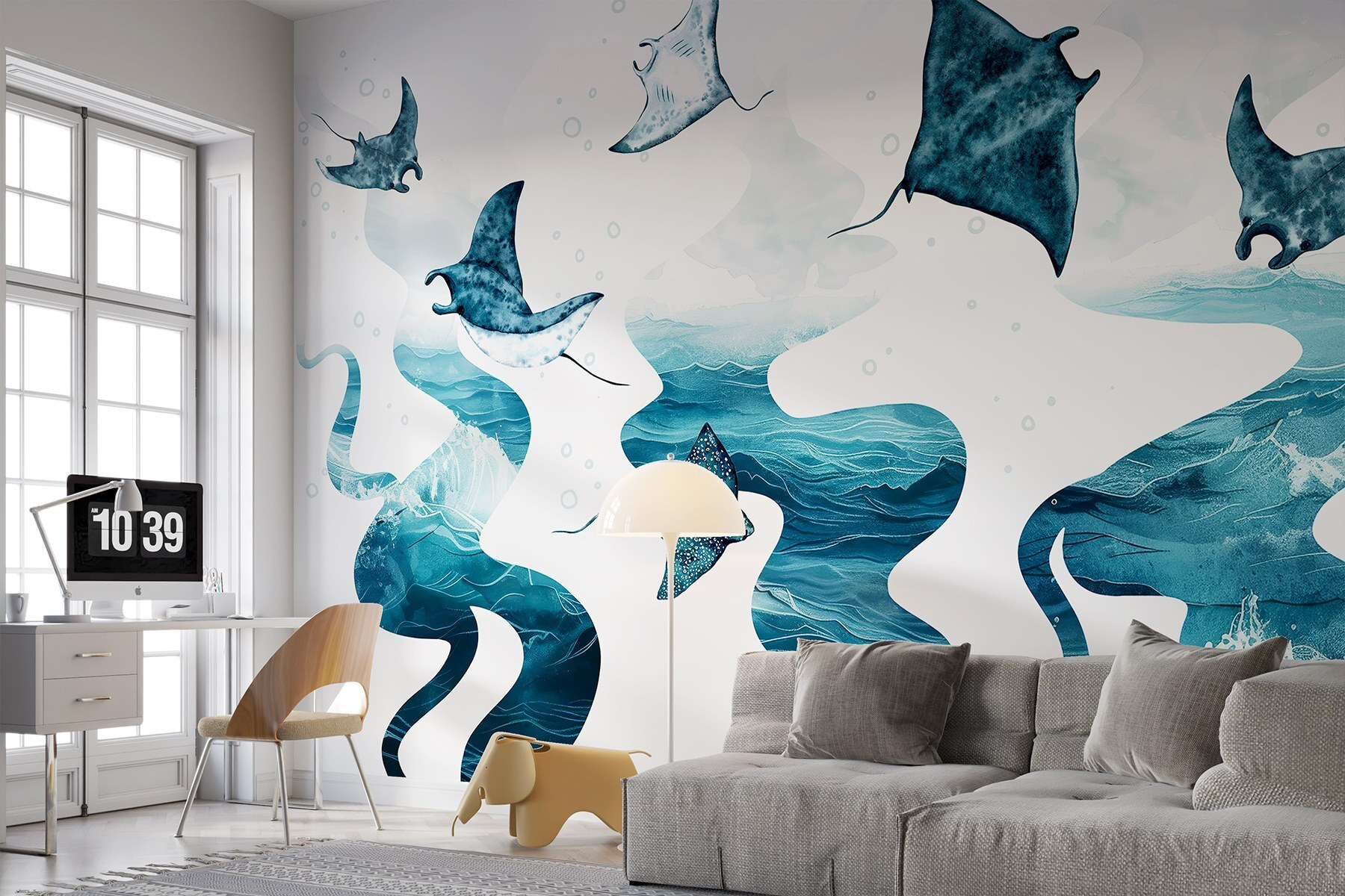 Trasformate qualsiasi spazio in una serena fuga sottomarina con questo splendido murale di razze che scivolano con grazia nell’acqua. Immaginate di entrare in una stanza dove il blu rilassante crea un’atmosfera tranquilla, quasi come una mini-vacanza a casa vostra. La fluidità del disegno vi farà sognare le onde dell’oceano e le dolci brezze, rendendolo perfetto per un angolo di spiaggia o un soggiorno rilassato. Inoltre, chi non ama le razze? Sono come i giganti gentili del mare, che portano un pizzico di meraviglia e un tocco di personalità alle vostre pareti. Non si tratta di un semplice decoro, ma di un promemoria quotidiano della bellezza della natura, che ispira sottilmente relax e sogni ad occhi aperti di fughe al mare. Immergetevi in questo murale e lasciate che la vostra immaginazione nuoti libera!