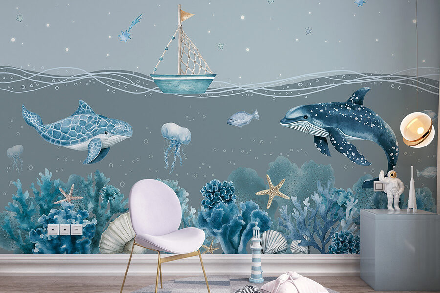 Trasformate il vostro spazio in una serena fuga sottomarina con il murale “Sea Life”. Immaginate di svegliarvi ogni giorno con delfini giocosi e meduse gentili che danzano sulle vostre pareti. Questa scena da sogno ritrae un’incantevole barchetta che scivola in un mare tranquillo, circondata da vivaci coralli e stelle marine. È come avere un pezzo di oceano a casa, senza la salsedine! Perfetto per la camera dei bambini o anche per un accogliente angolo lettura, questo murale dona un tocco di estrosità e di calma. Lasciate che i colori vi avvolgano, creando un’atmosfera tranquilla che potrebbe ispirare sogni ad occhi aperti di avventure nell’oceano.