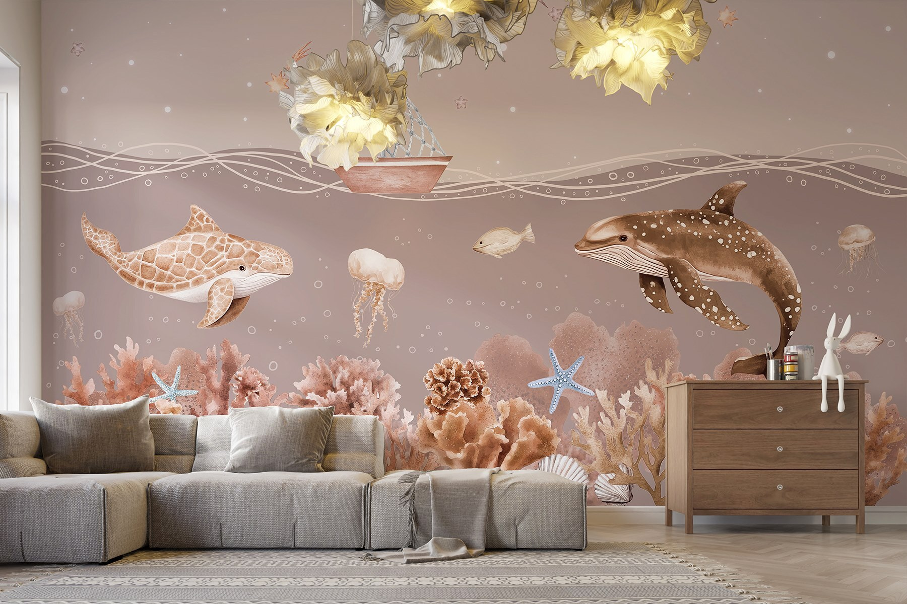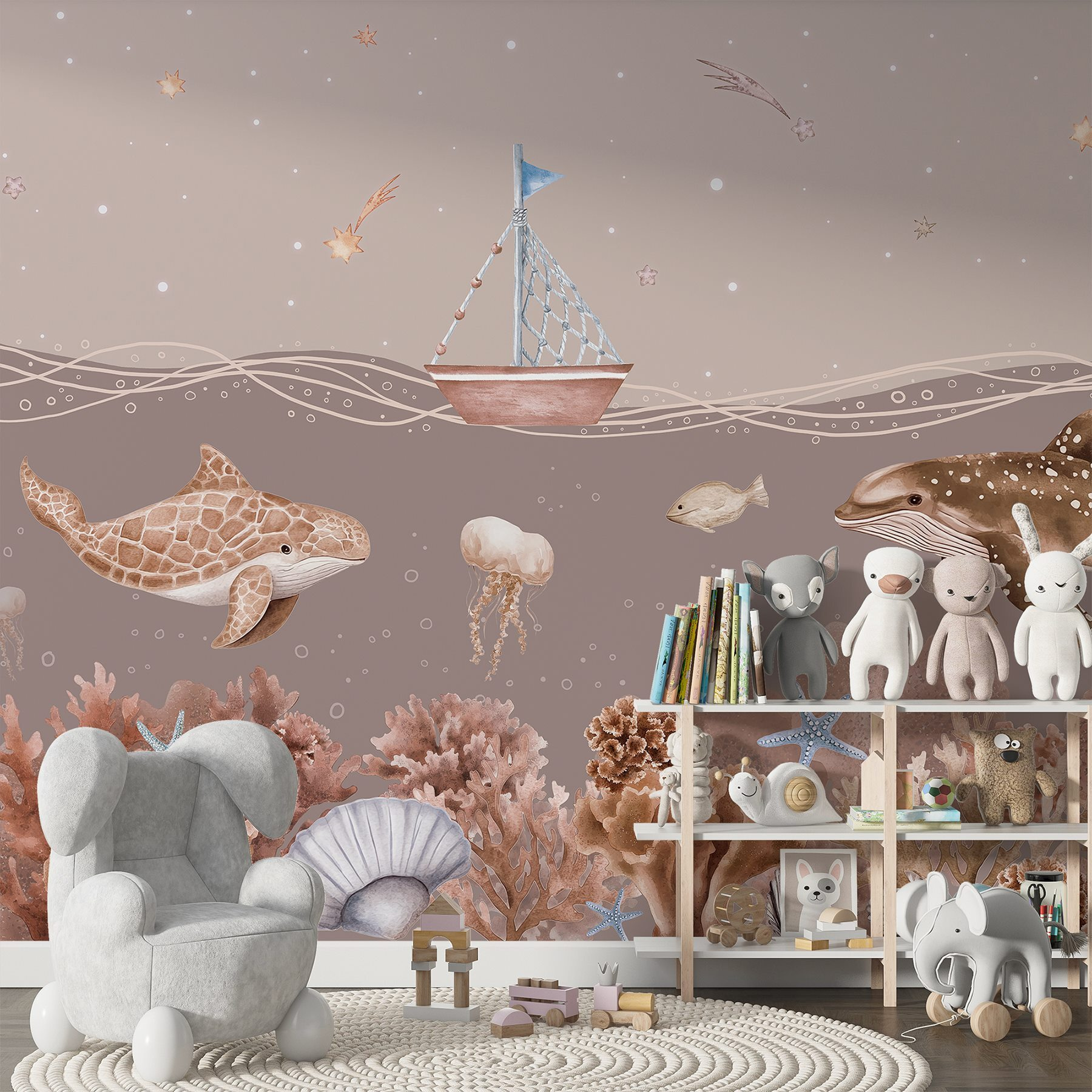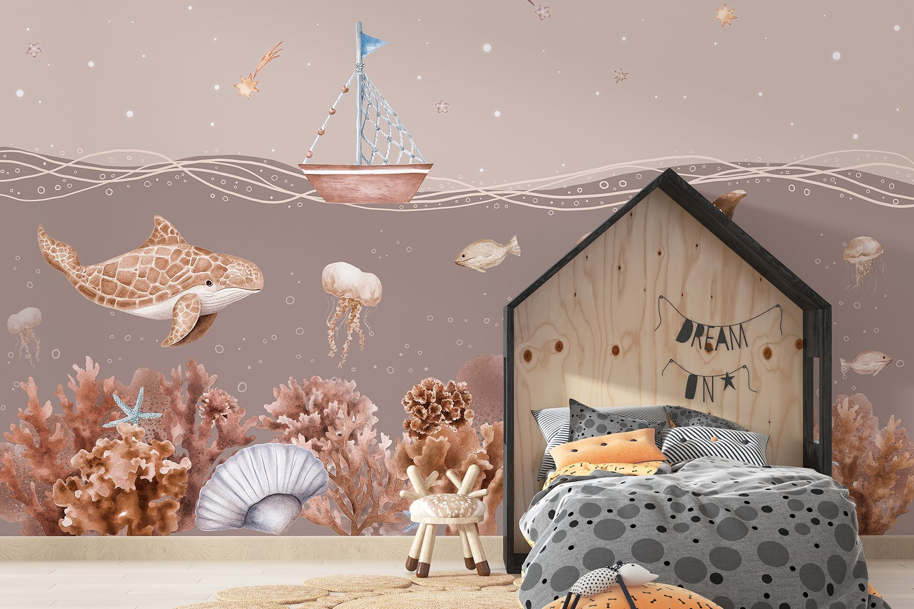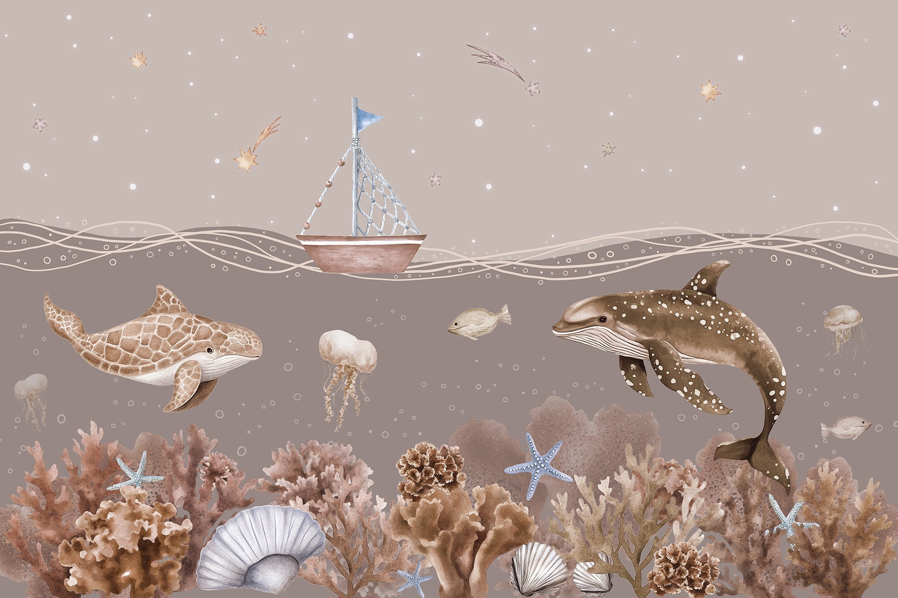 Carta da parati Vita di mare con barca e pesci (SKU: w02310v4)