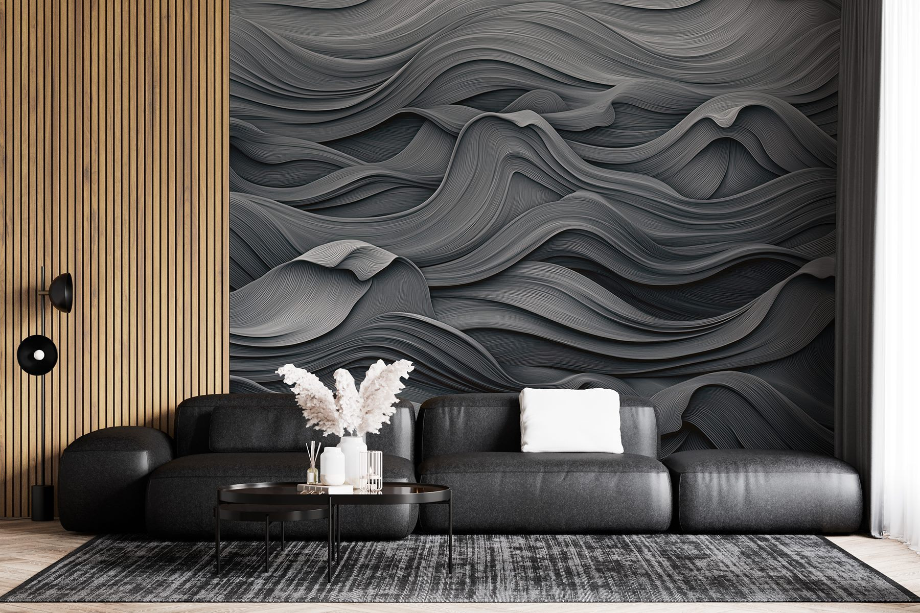 Trasformate il vostro spazio con questo splendido murale ondulato grigio e bianco. Come una dolce danza di onde, aggiunge un’atmosfera serena che rende ogni stanza più accogliente. Immaginate il vostro salotto o la vostra camera da letto avvolti da queste linee morbide e ondulate: all’improvviso sarà come se le vostre pareti vi sussurrassero tranquilli segreti. Perfetto per le serate in casa o per un vivace brunch con gli amici, è un elemento di conversazione senza nemmeno provarci. Inoltre, chi non ama un po’ di texture? Non si tratta solo di arredamento, ma di un’esperienza che trasforma le pareti insipide in una tela di sottile raffinatezza. Tuffatevi!