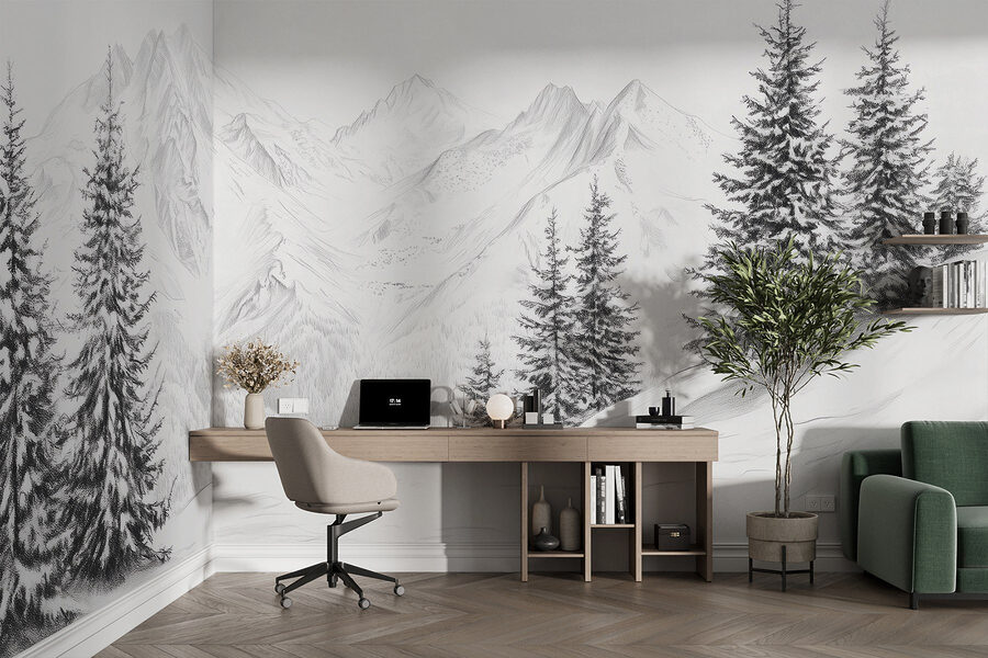 Trasformate qualsiasi stanza in un’evasione serena con questo splendido murale raffigurante una catena montuosa innevata. Immaginatevi mentre guardate quelle cime maestose e vi accoccolate con una tazza di cioccolata, perfetta per stimolare l’immaginazione o per farvi sognare ad occhi aperti. I dettagli intricati e i toni tenui danno un senso di calma e meraviglia, come un dolce sussurro della natura proprio a casa vostra. Non si tratta solo di arredamento, ma di un biglietto per la tranquillità. Che si tratti di un soggiorno, di una camera da letto o di un ufficio, questo murale invita alla pace e alla creatività. Immaginate che ogni parete possa raccontare una storia: un accogliente rifugio invernale vi aspetta!