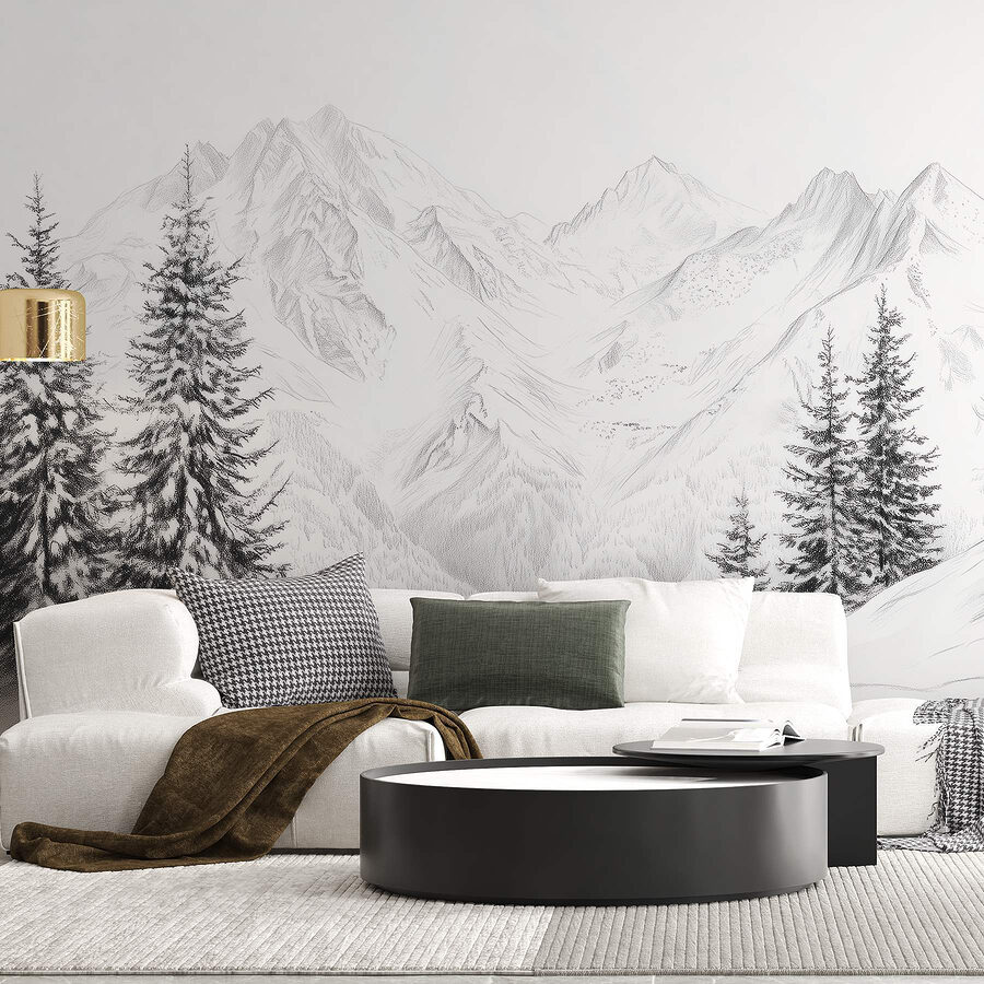 1 recensione per Carta da parati Disegno di una catena montuosa innevata