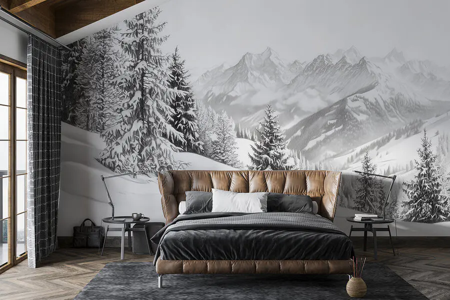 Trasformate qualsiasi stanza in una serena fuga invernale con questo splendido murale di montagne innevate e alberi maestosi. Immaginatevi accoccolati con una bevanda calda, ammirando il paesaggio mozzafiato che sembra a un soffio da voi. I bianchi tranquilli e i grigi tenui evocano una calma che avvolge come una calda coperta, perfetta per le notti fredde. Aggiungete un tocco di natura selvaggia alle vostre pareti e lasciate che il vostro spazio respiri aria di montagna. Ideale per gli amanti della natura e per chi sogna a occhi aperti, questo murale invita a pensieri pacifici e a un senso di avventura, anche dal divano.