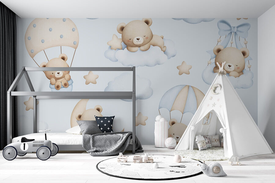 Trasformate qualsiasi stanza in un accogliente paese delle meraviglie con questo adorabile murale con affascinanti orsetti che fluttuano sulle nuvole. Chi non vorrebbe che gli orsetti si lanciassero con il paracadute nel proprio spazio? Perfetto per le camerette e le stanze da gioco, questo murale trasmette un senso di calma e gioia, come se ogni orsetto stesse vivendo una dolce avventura. Immaginate le dolci risate e le storie della buonanotte che fluttueranno sotto queste soffici scene. Non è solo un murale, è un biglietto per il mondo dei sogni dove regnano coccole e risate. Quindi, prendete una cioccolata calda e lasciatevi avvolgere dalle vibrazioni delle coccole!