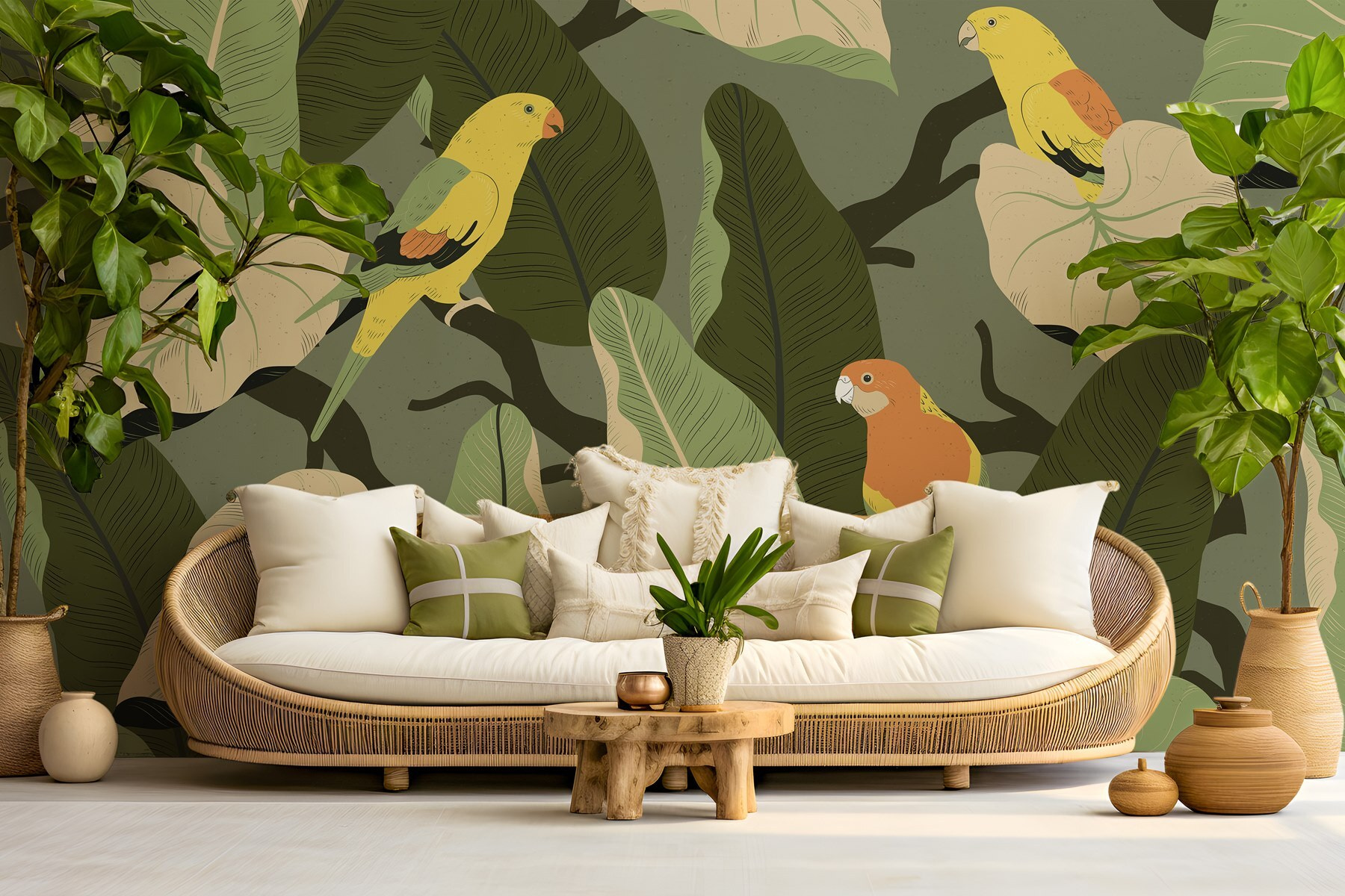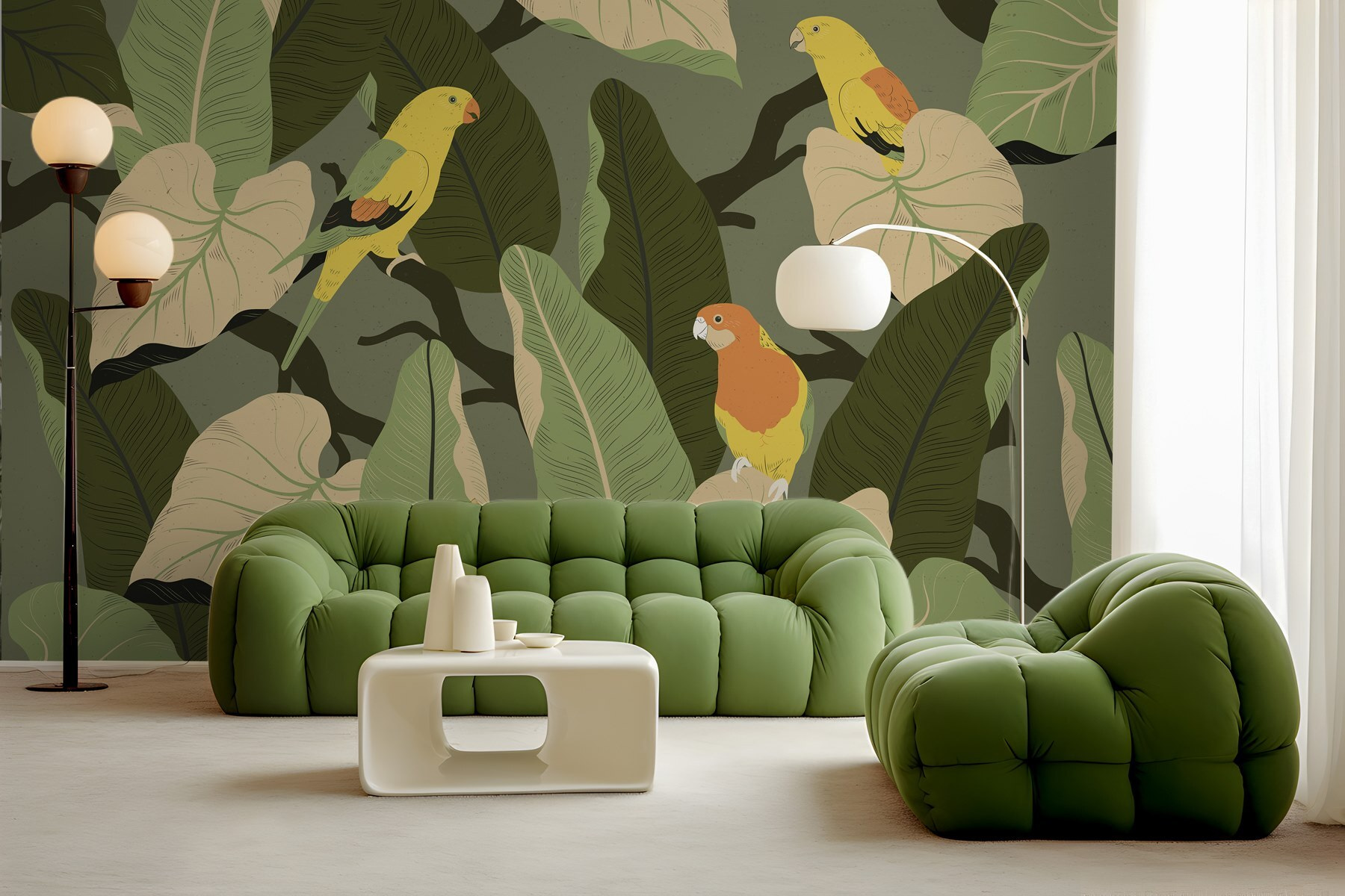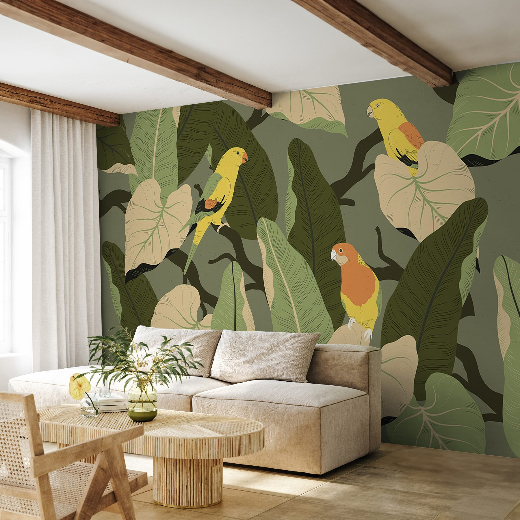 Trasformate qualsiasi spazio in un paradiso lussureggiante con questo vivace murale di uccelli colorati appollaiati su rami frondosi! Immaginate di entrare in una stanza dove le vibrazioni tropicali scorrono come una dolce brezza. Questi allegri amici piumati sembrano cantare, invitandovi a fermarvi e ad immergervi nella bellezza che li circonda. Perfetto per un angolo lettura o una vivace zona pranzo, questo murale porta un tocco di natura in casa, senza bisogno di avere il pollice verde! Inoltre, è un elemento di conversazione che stimola storie di viaggi in luoghi esotici. Chi non vorrebbe svegliarsi circondato da questo fascino? È come una mini-vacanza a casa vostra!