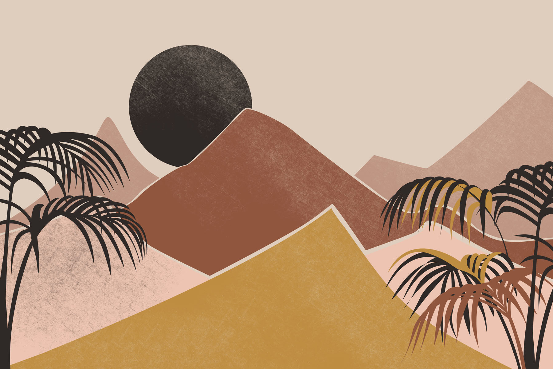 Trasformate qualsiasi stanza con questo splendido murale, “Paesaggio con palme e montagne”. Immaginate di entrare in un’accogliente fuga ogni volta che lo guardate. Le tonalità calde e terrose combinate con le sagome delle palme ondeggianti lo rendono uno sfondo perfetto per sognare ad occhi aperti luoghi lontani. Questo murales sussurra “vibrazioni vacanziere” e funziona a meraviglia in un soggiorno, in una camera da letto o anche in un angolo creativo. Sembra un dolce abbraccio della natura, proprio come a casa. Inoltre, quelle montagne promettono avventure senza mai lasciare il divano: chi potrebbe resistere?
