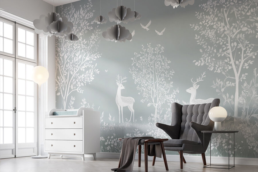 Trasformate il vostro spazio in una fuga serena con questo incantevole murale che raffigura graziosi cervi bianchi che si aggirano in una foresta soffice e frondosa. Immaginate di entrare nella vostra stanza e di sentirvi come in un bosco da sogno, pieno di dolci sussurri della natura. I delicati uccellini che svolazzano in alto aggiungono un tocco di fantasia, rendendolo uno sfondo perfetto per serate accoglienti o mattinate ispirate. È come avere un rifugio tranquillo proprio a casa! Sorseggiando un tè o leggendo un libro, questo murale invita a trascorrere piccoli momenti di calma. Inoltre, è un ottimo spunto di conversazione: chi non vorrebbe parlare della propria foresta segreta?
