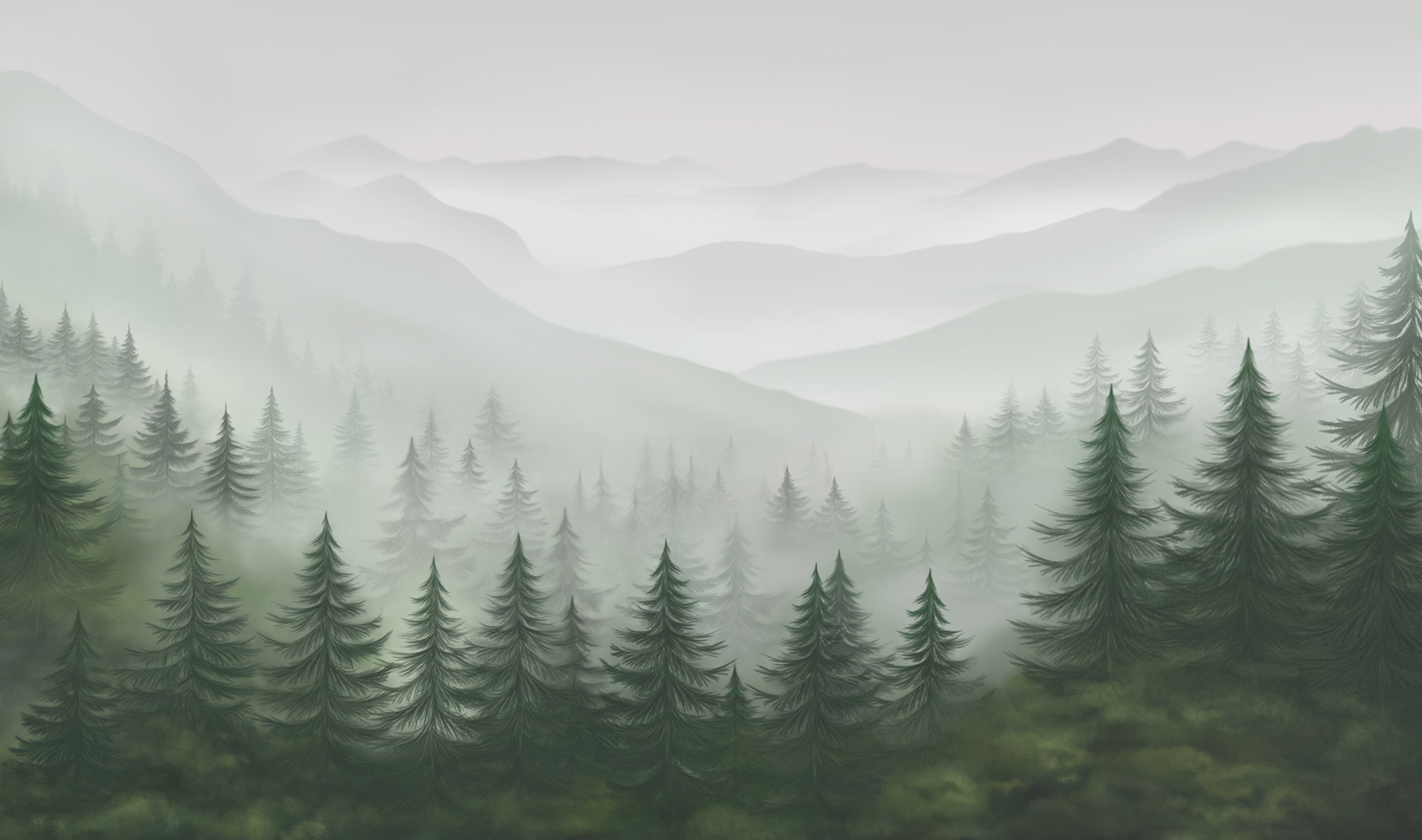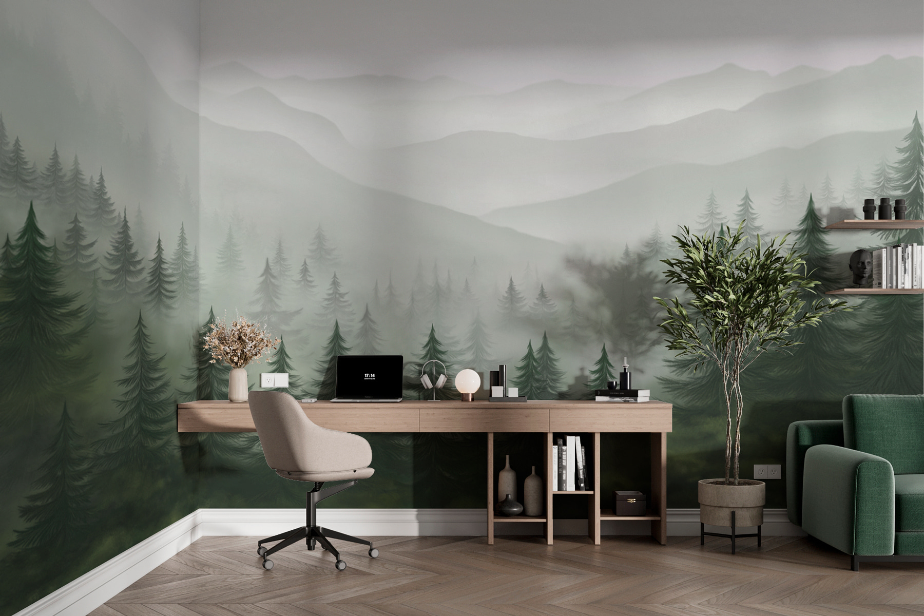 Carta da parati Paesaggio nebbioso con alberi e montagne (SKU: w02450)
