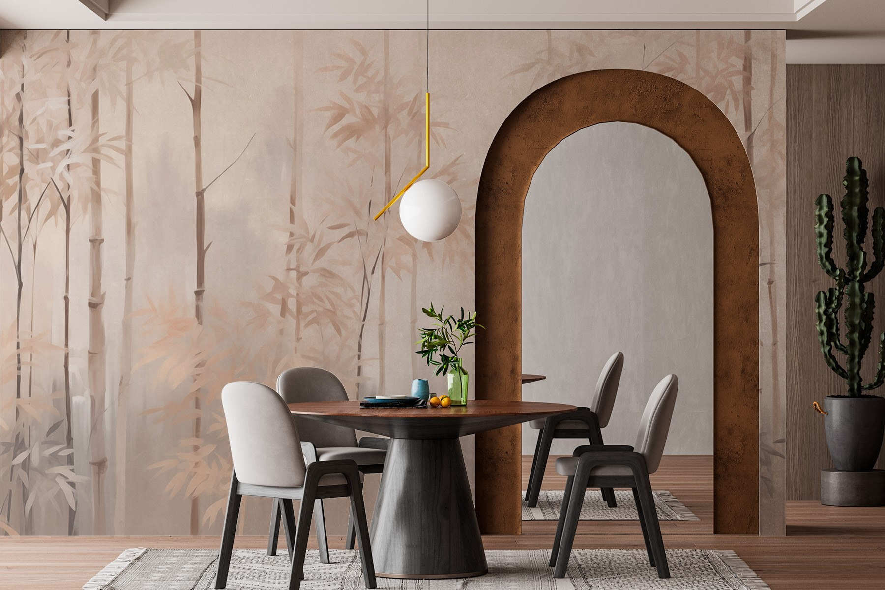 Guardate esattamente come apparirà il vostro spazio con la nuova carta da parati prima di acquistarla. Visualizzazione professionale da parte di designer esperti senza alcun costo o obbligo di acquisto.