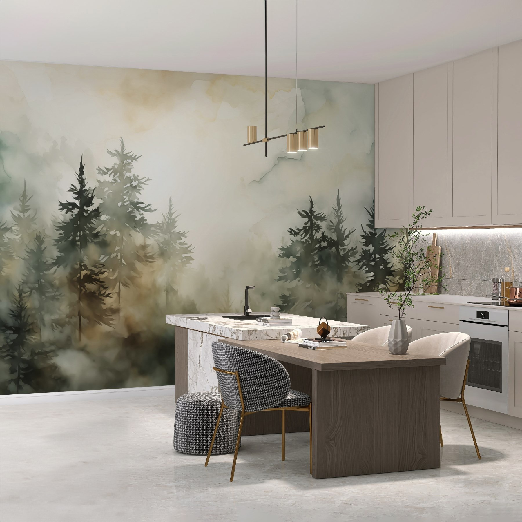 Guardate esattamente come apparirà il vostro spazio con la nuova carta da parati prima di acquistarla. Visualizzazione professionale da parte di designer esperti senza alcun costo o obbligo di acquisto.