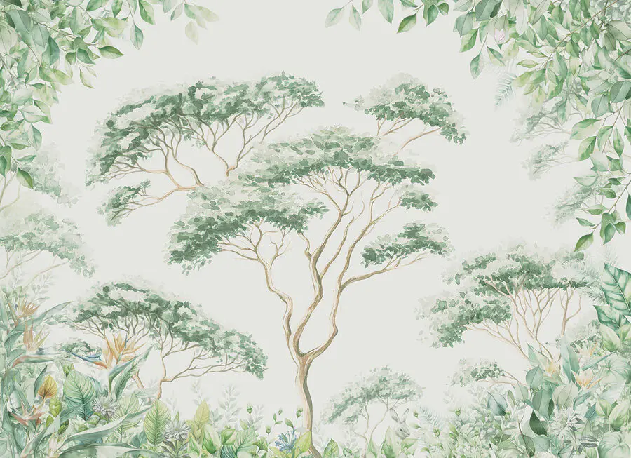Trasformate il vostro spazio con questo delizioso “Murales di alberi e piante”. Immaginate di immergervi in una foresta serena ogni volta che entrate nella stanza: sembra una mini-vacanza, vero? Il verde tenue e le linee delicate portano una ventata di aria fresca, facendo sentire viva qualsiasi parete.