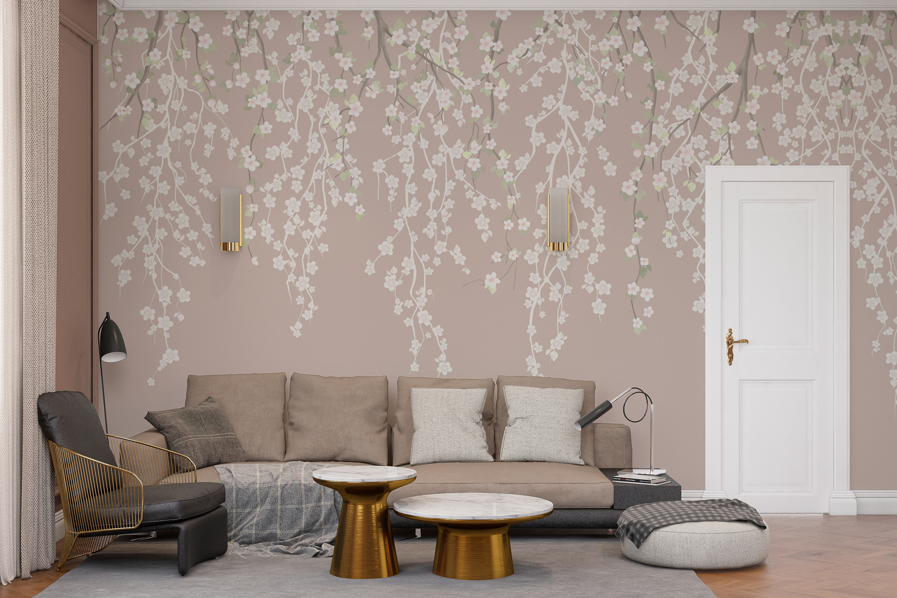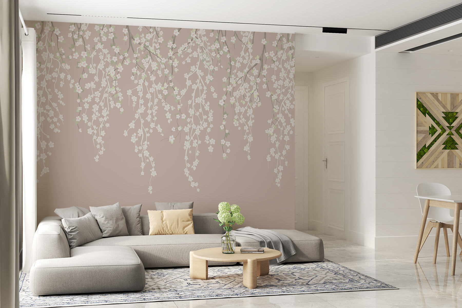 Guardate esattamente come apparirà il vostro spazio con la nuova carta da parati prima di acquistarla. Visualizzazione professionale da parte di designer esperti senza alcun costo o obbligo di acquisto.