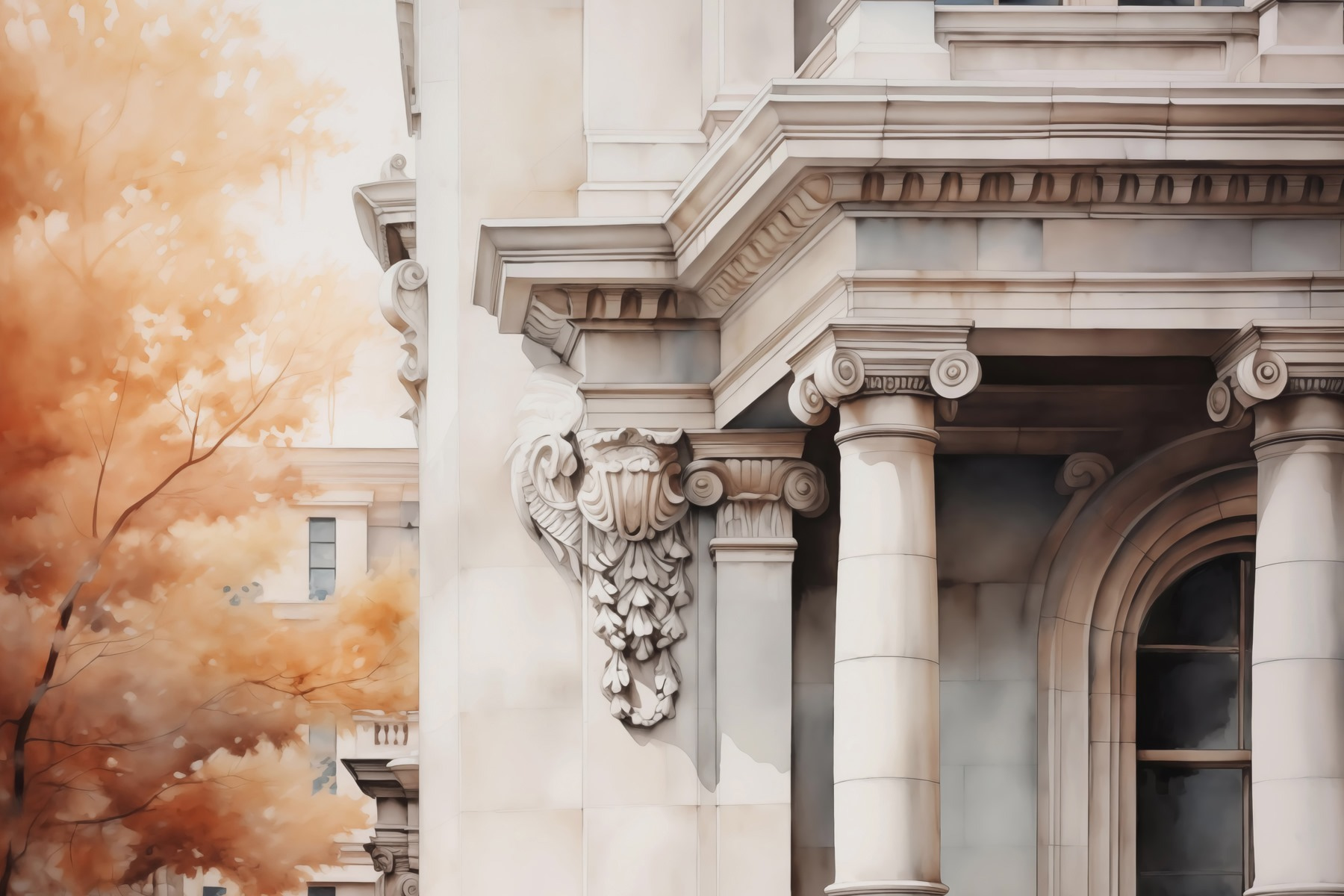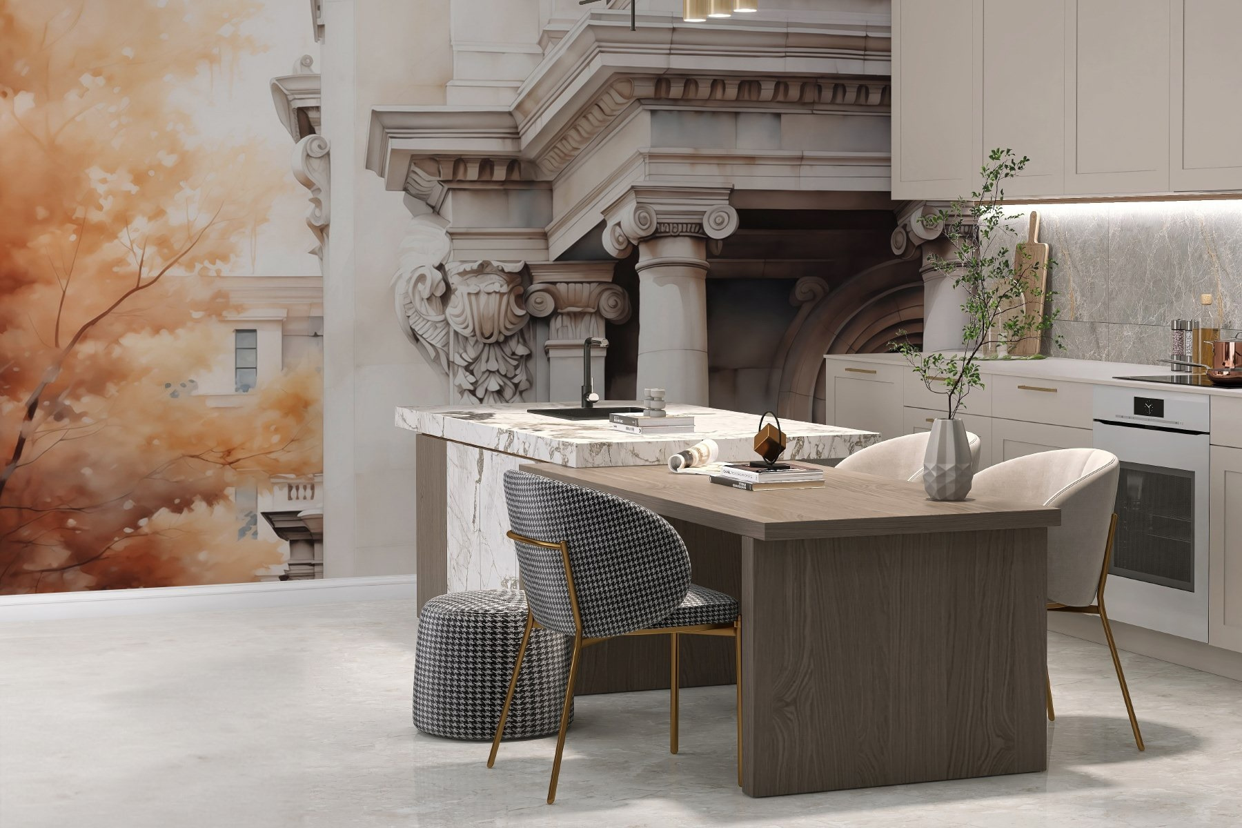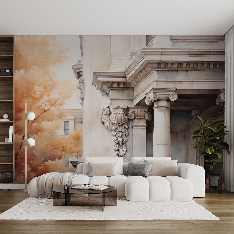 Trasformate qualsiasi stanza con questo splendido murale con eleganti colonne e una finestra da sogno. Immaginate di svegliarvi ogni mattina con questa vista serena: è come avere una fetta personale di bellezza architettonica proprio a casa vostra. Le tonalità calde si fondono perfettamente con il tocco della natura, rendendo lo spazio accogliente e invitante. Inoltre, è un fantastico spunto di conversazione! Gli amici si fermeranno sicuramente ad ammirarlo. Che si tratti del soggiorno o di un angolo tranquillo per la lettura, questo murale aggiunge un tocco di raffinatezza senza bisogno di una galleria d’arte. Preparatevi a sentirvi ispirati!